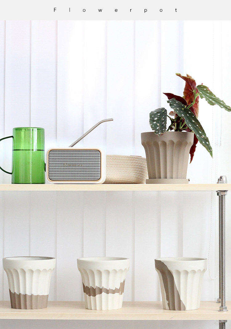 Estilo coreano creativo ins Escritorio de cerámica maceta orquídea Internet celebridad Begonia olla conjunto transpirable verde maceta