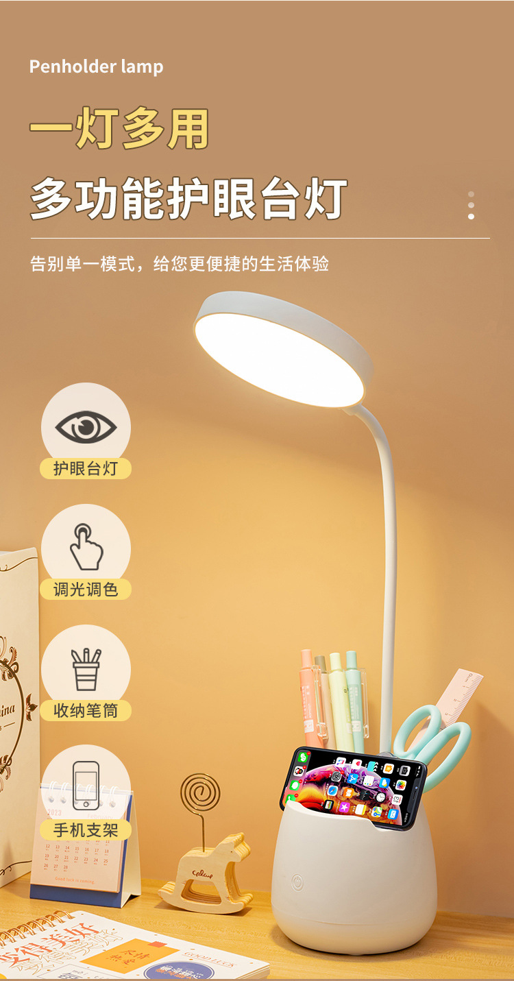Lámpara de escritorio protección de los ojos Lámpara de aprendizaje LED recargable plug-in estudiante universitario dormitorio artefacto protección de la visión de los niños Lámpara de lectura