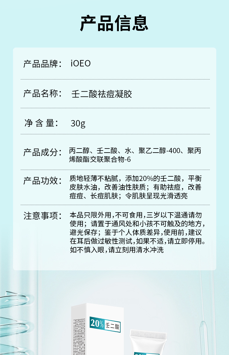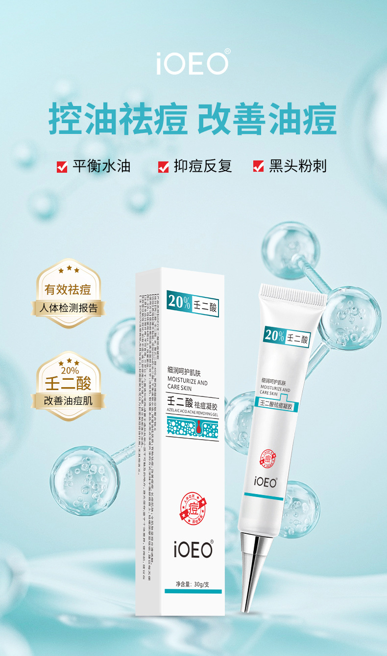 IOEO ácido azelaico gel antiacné 20% crema antiacné puntos negros marca de acné crema para el acné entrega al por mayor del fabricante