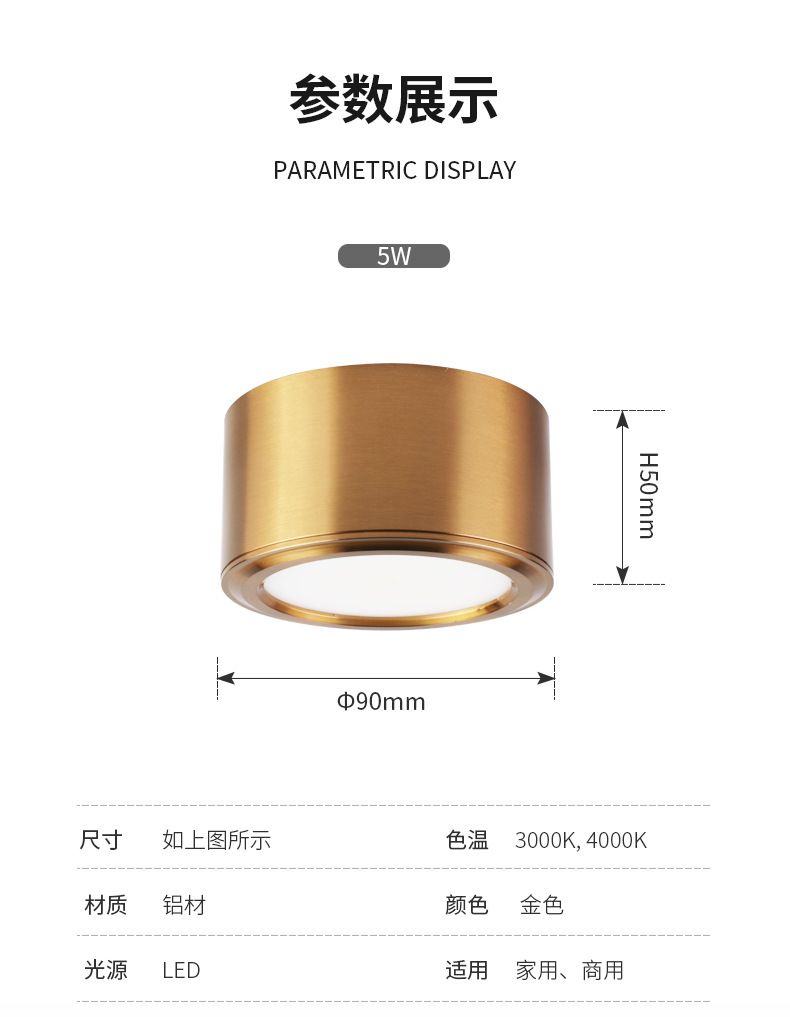 Post-moderno Luz de lujo sala de estar dormitorio downlight tienda de ropa ventana pasillo de alta gama lujo oro abierto-montado proyector