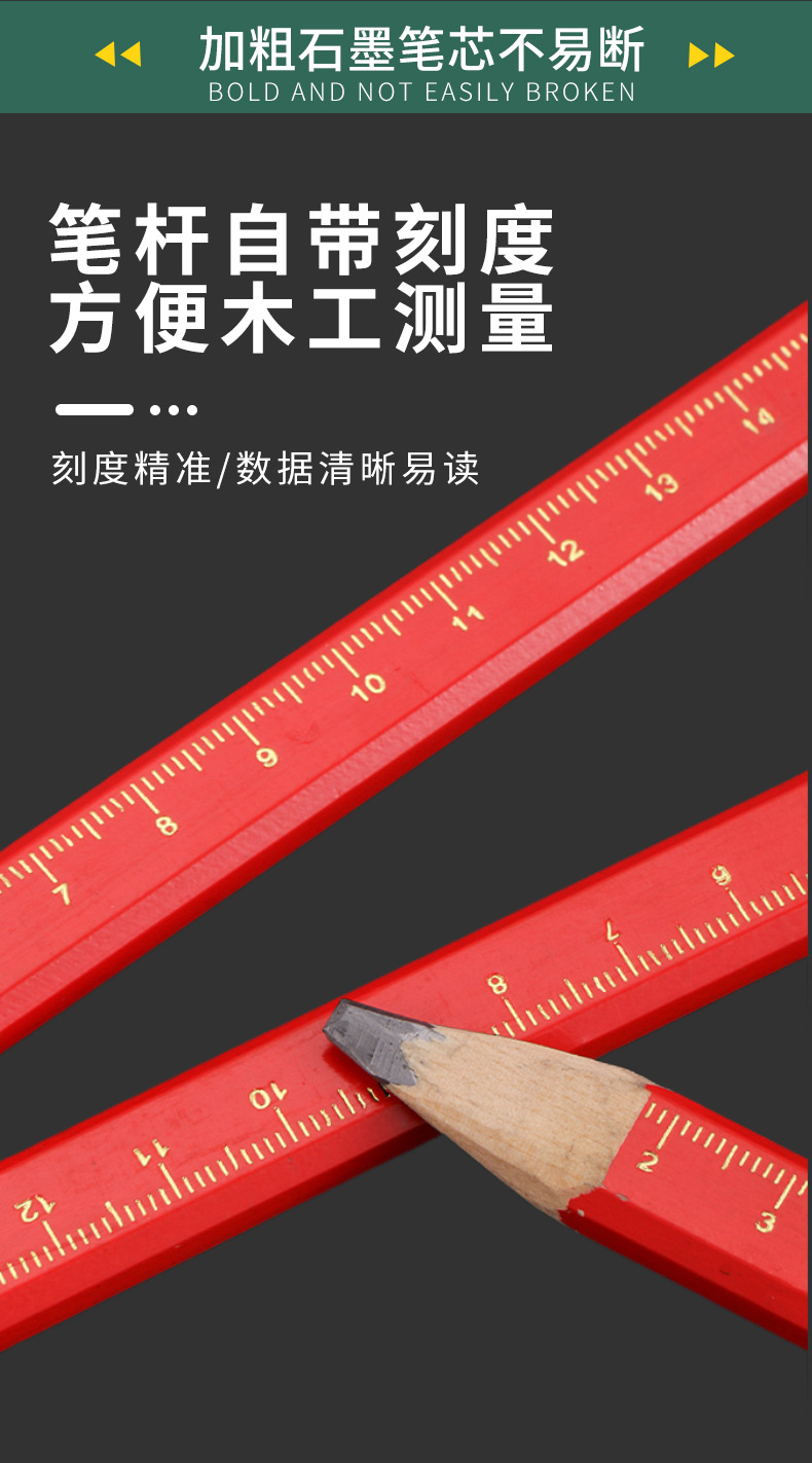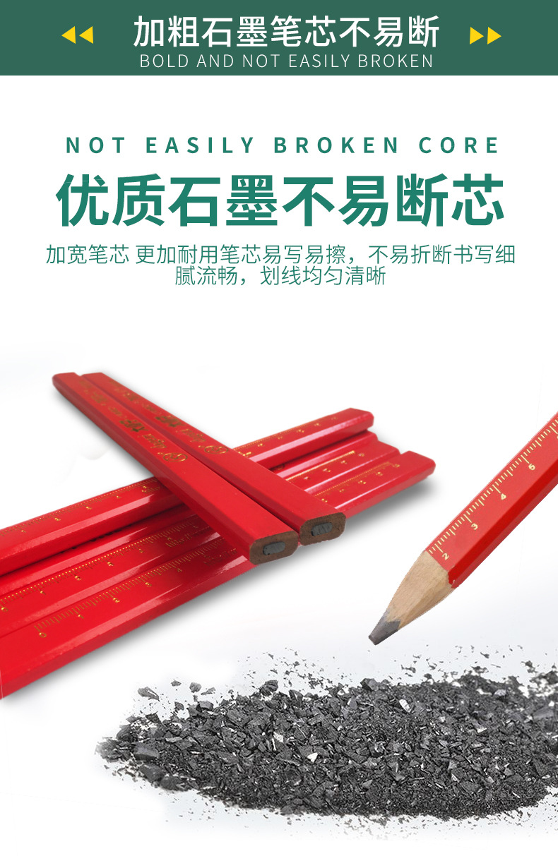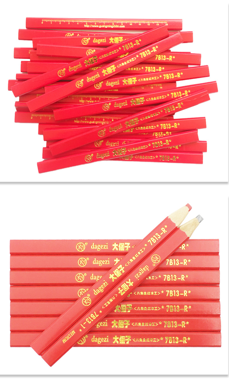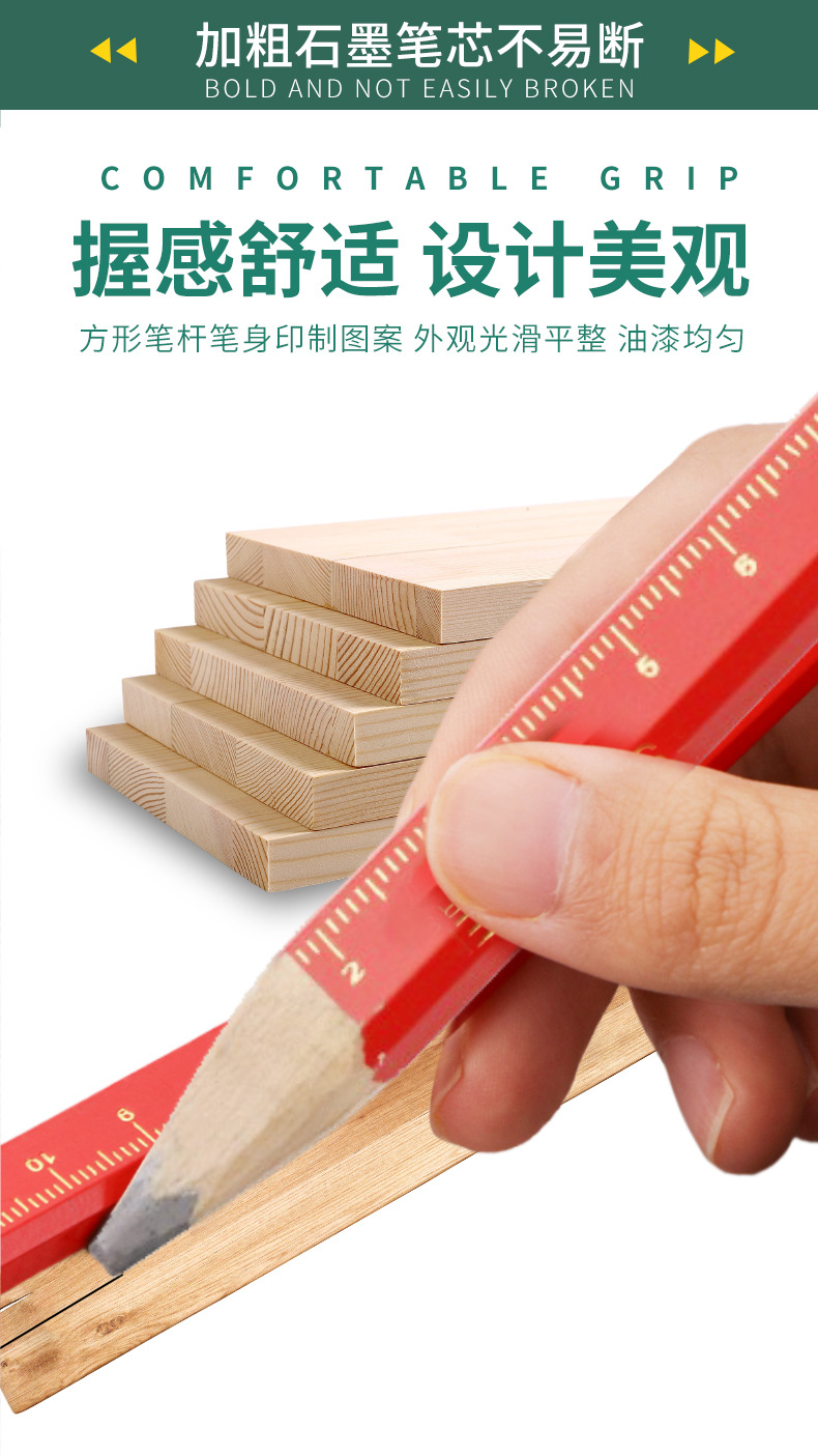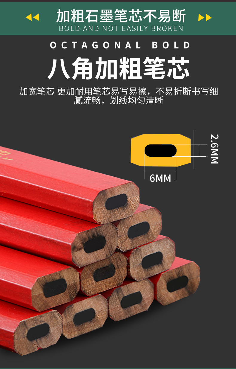 Carpintería lápiz carpintería especial octogonal grueso núcleo plano rojo núcleo marcado pluma no fácil de romper marca pluma hombre grande carpintería pluma