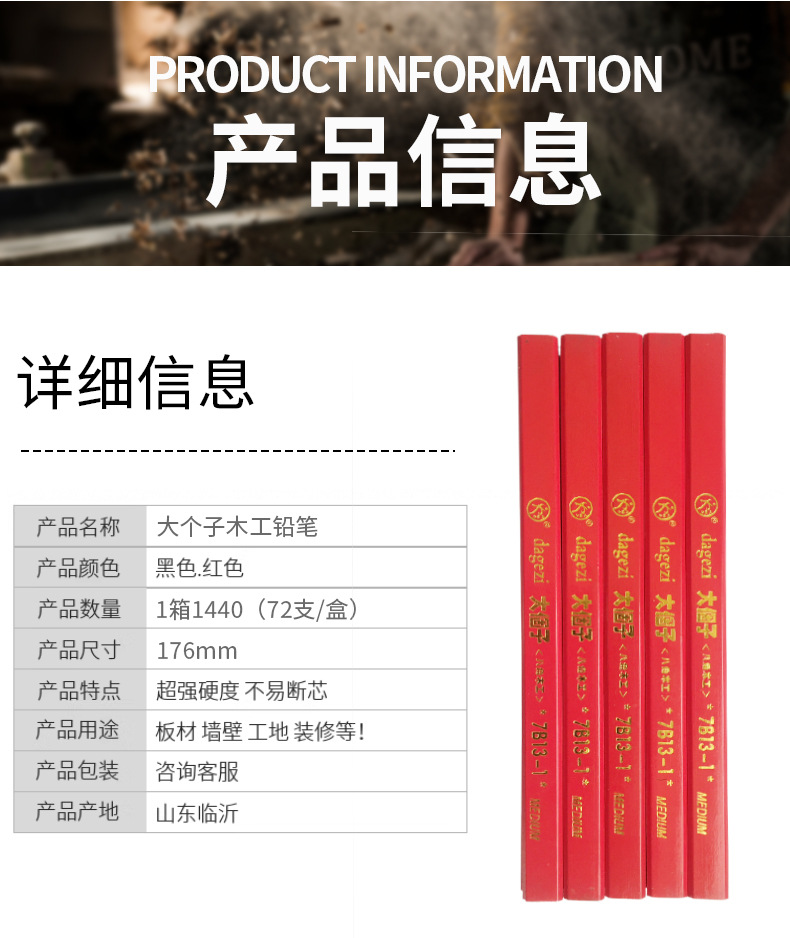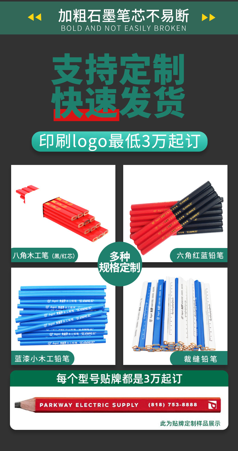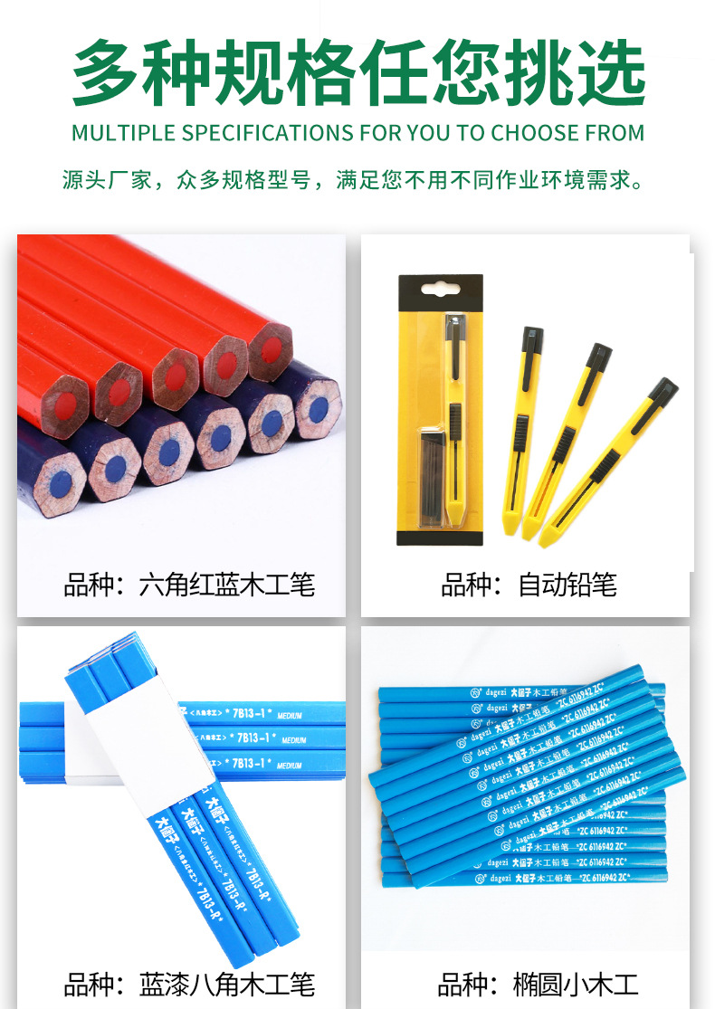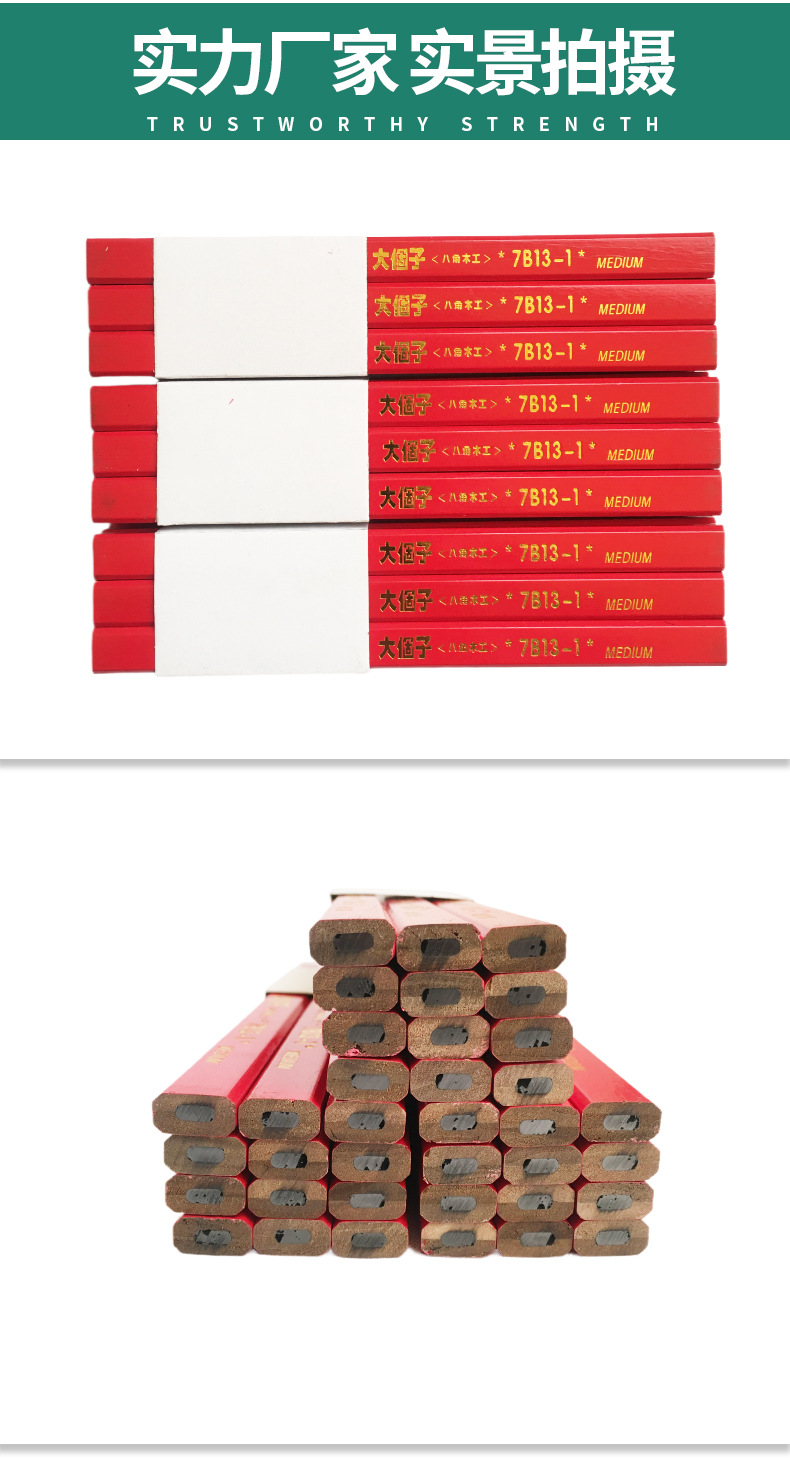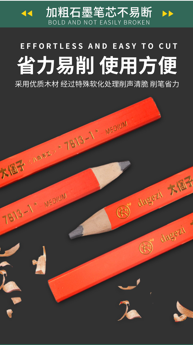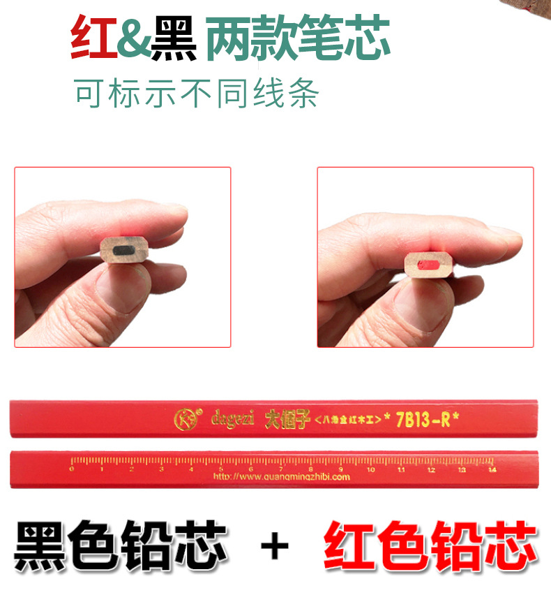 Carpintería lápiz carpintería especial octogonal grueso núcleo plano rojo núcleo marcado pluma no fácil de romper marca pluma hombre grande carpintería pluma