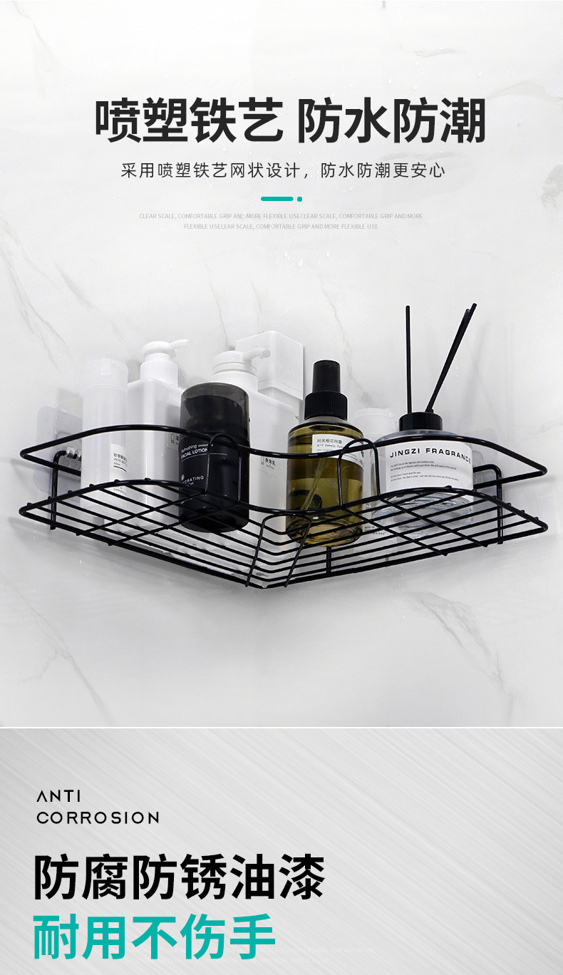 Estante triangular para colgar en la pared del baño, sin perforación en la pared, hierro forjado, a prueba de humedad, estante de almacenamiento para el baño
