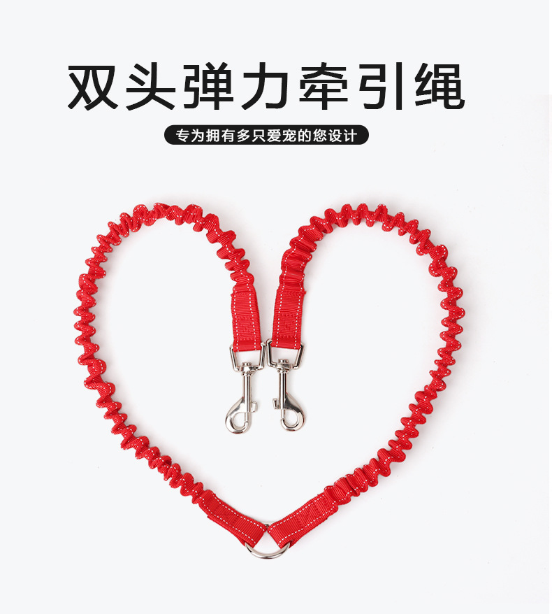 Amazon Venta caliente correa elástica de doble cabeza correa de perro un arrastre dos perro cinturón elástico a prueba de explosiones correa para mascotas
