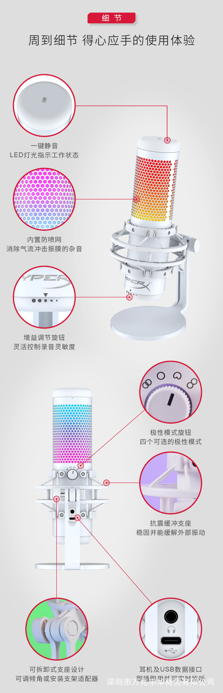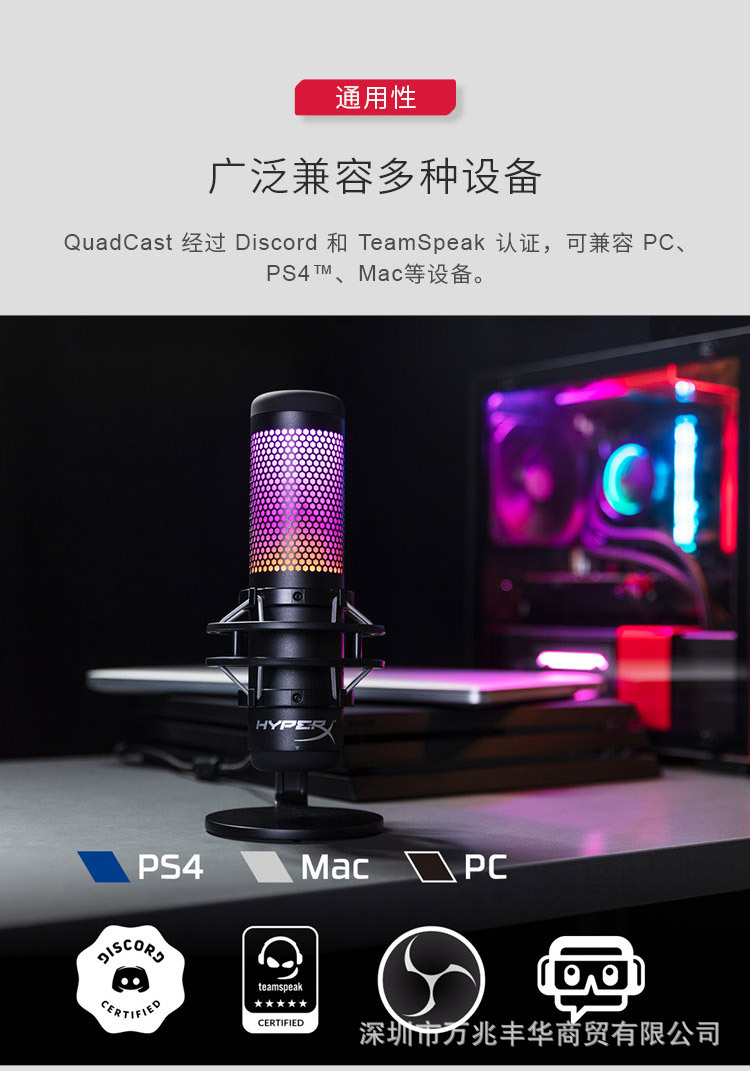 HYPERX extremadamente desconocido Quadcast ondas de sonido S juego transmisión en vivo micrófono de anclaje e-sports micrófono USB