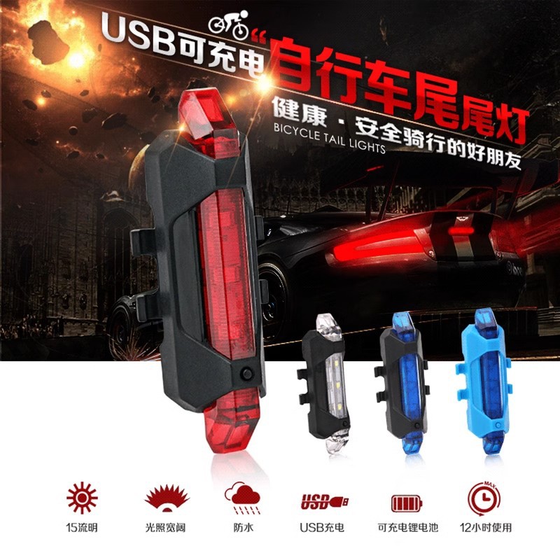 Luces traseras de bicicleta al por mayor en stock, luces de advertencia, recargables por USB, luces de advertencia para ciclismo nocturno, equipo de ciclismo al aire libre para bicicleta de montaña.