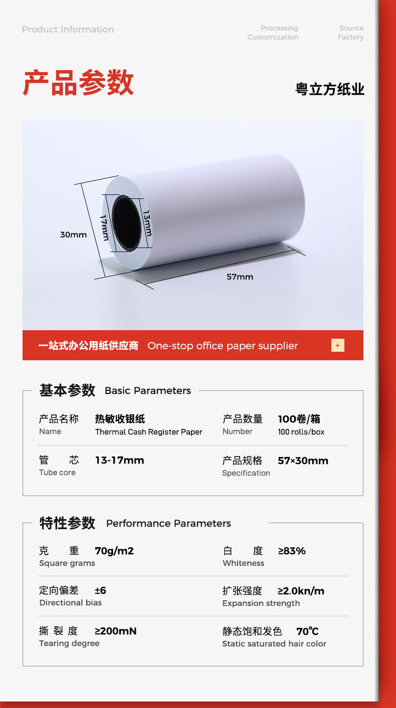 Papel de caja registradora térmica 57x30 maullar papel de impresión de la máquina 57*30 Papel de recibo 5730 tubo pequeño núcleo de papel de caja registradora