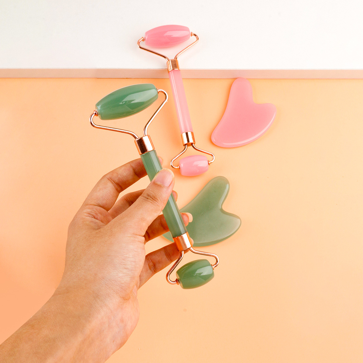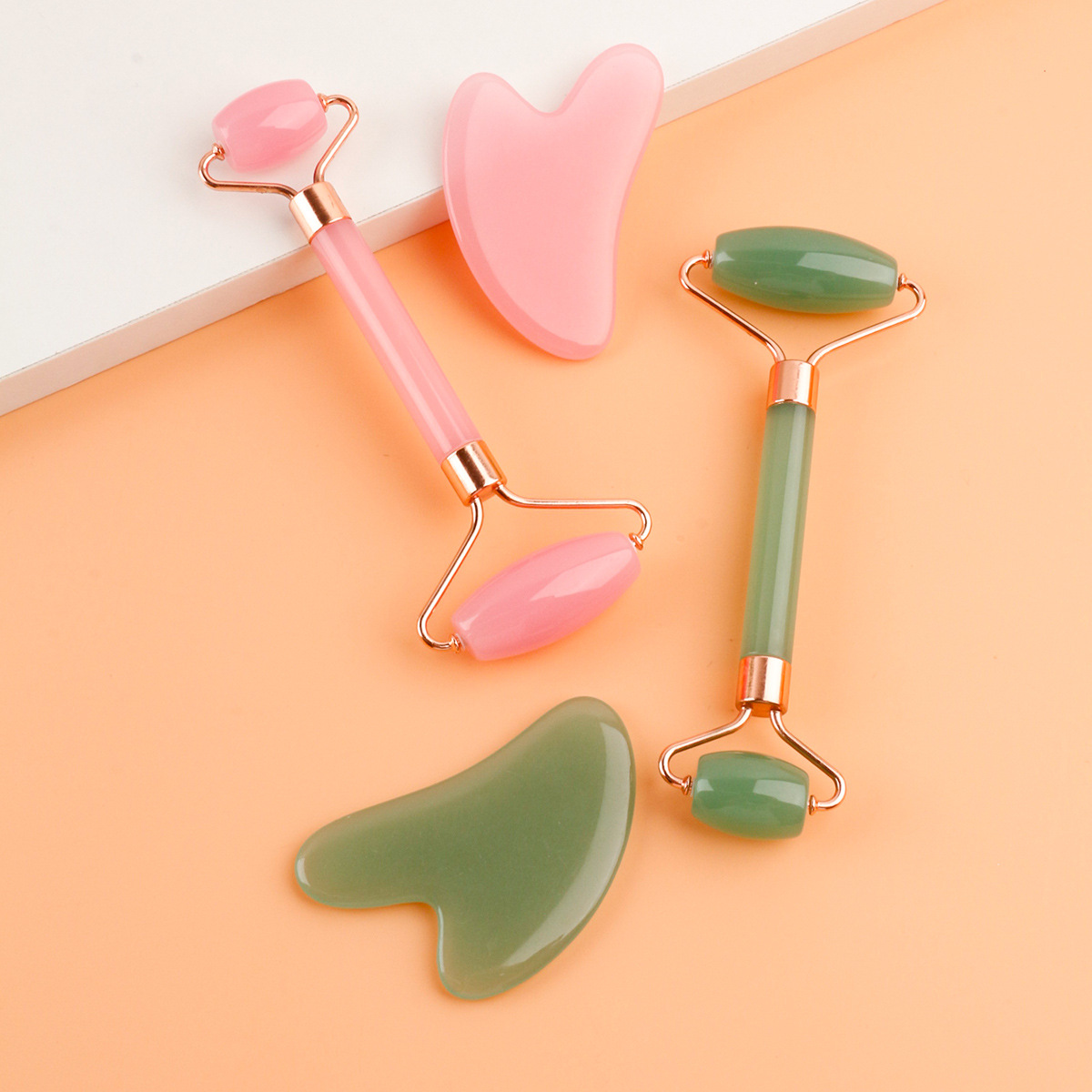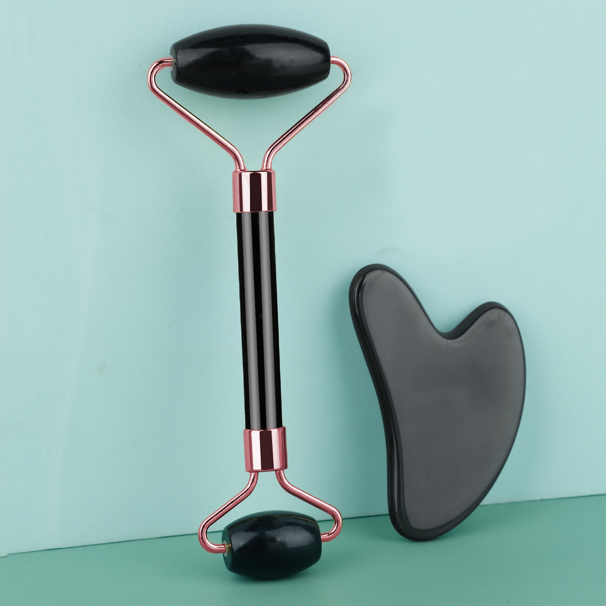 Rodillo de jade de imitación de doble cabeza, masajeador de tabla gua sha, bastón de masaje facial de fisioterapia, dispositivo de belleza de resina engrosada, transfronterizo