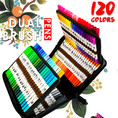 En stock 12/24/36/60/72/100/120/132 color de doble cabeza suave cepillo cabeza marcador gancho pluma papelería