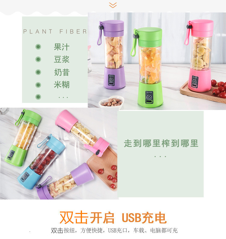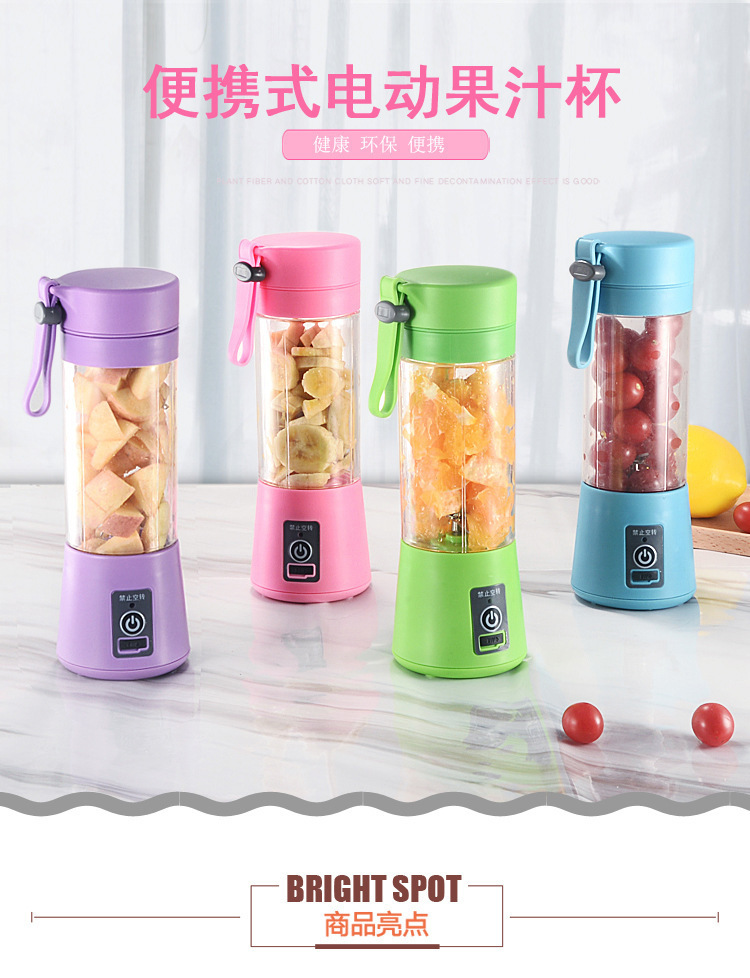 Fabricantes transfronterizos inglés pequeño portátil exprimidor eléctrico hogar mini exprimidor hoja de acero inoxidable exprimidor taza