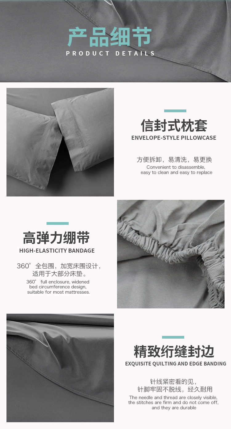Juego de cuatro piezas QUEEN (sábana de cama 229X259cm sábana ajustable 152x203 + 38,1 cm funda de almohada 51x76cm 2 piezas)