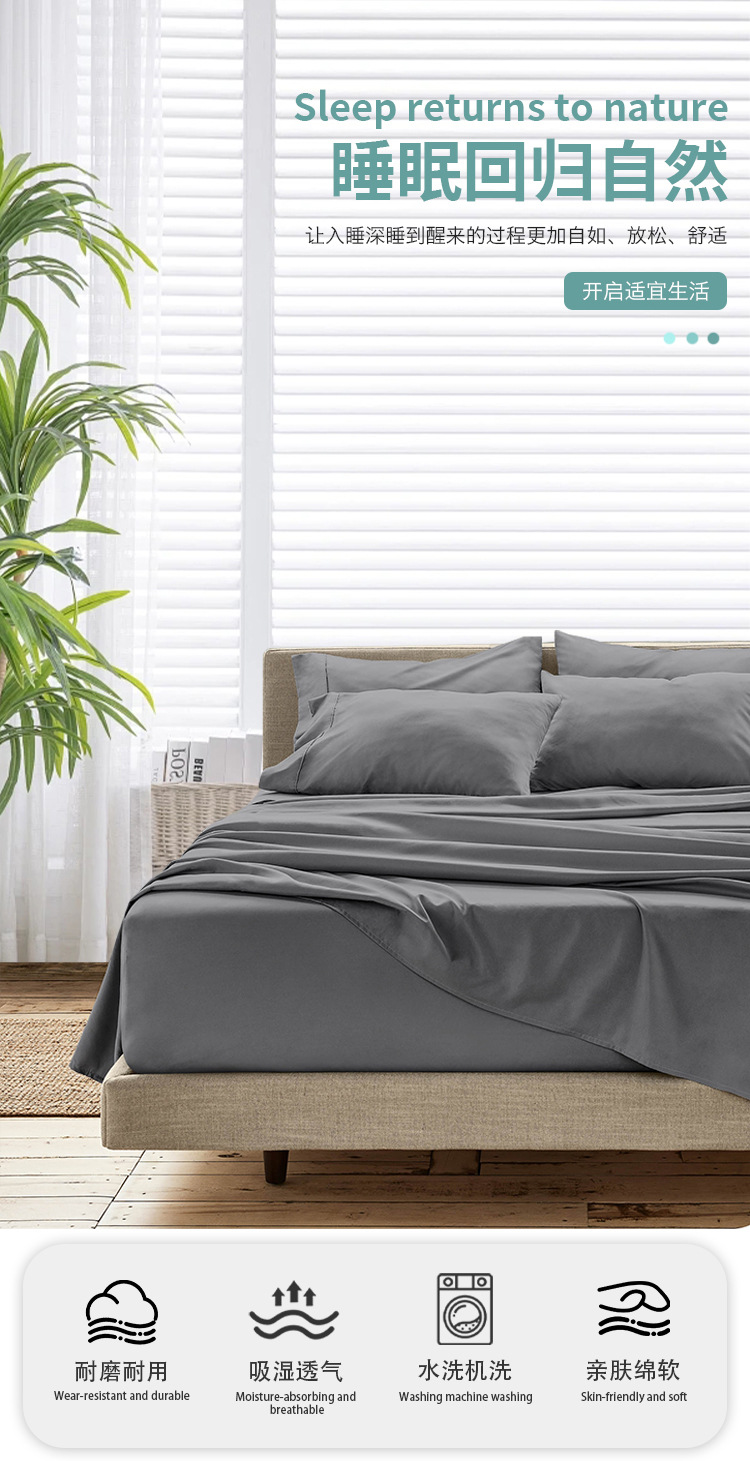 Suministro directo de fábrica, juego de cuatro piezas de fibra de bambú de color puro para dormir, funda de edredón de fibra regenerada de bambú.