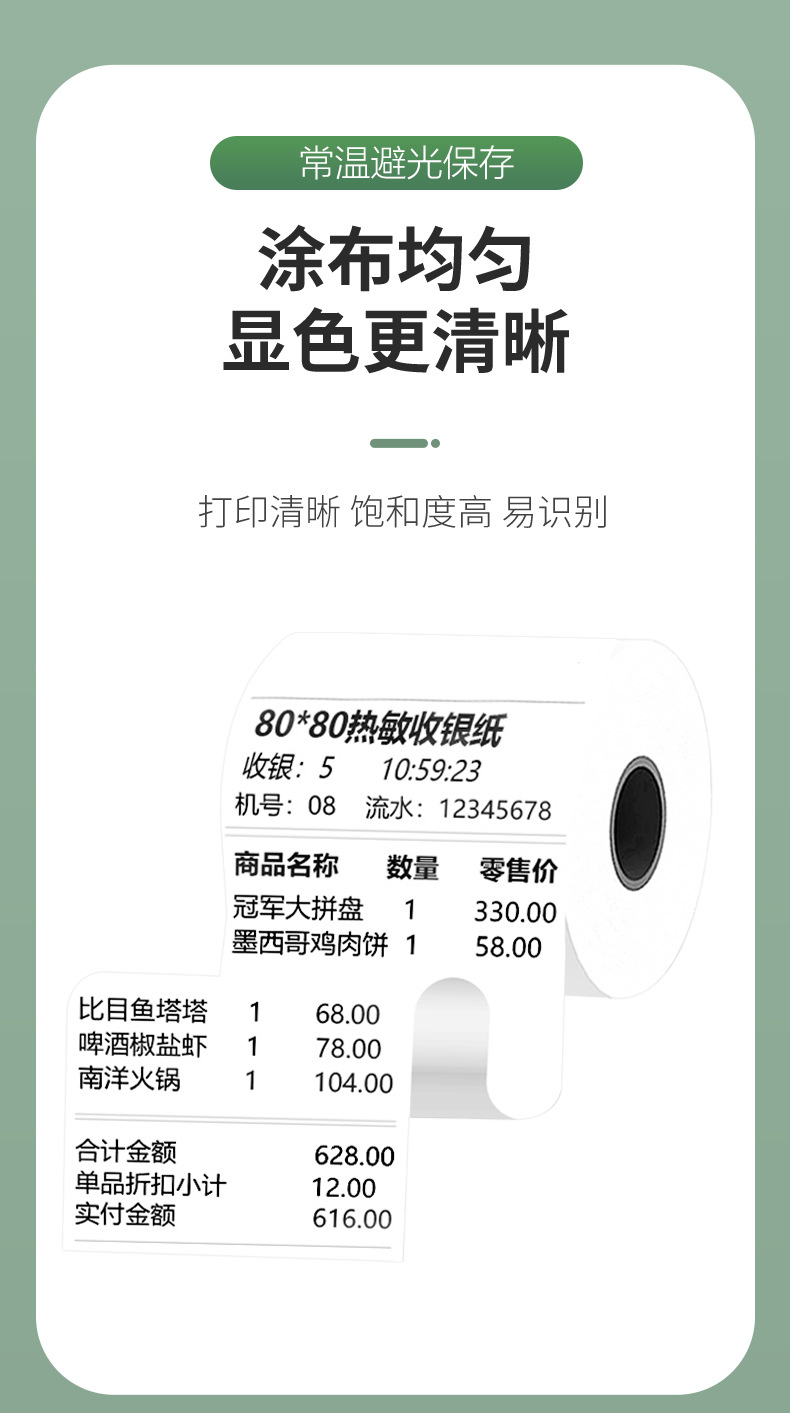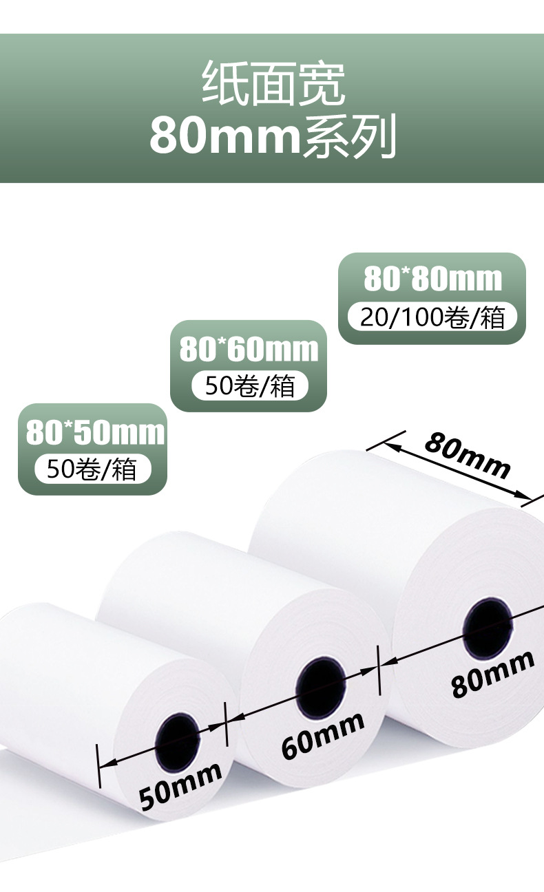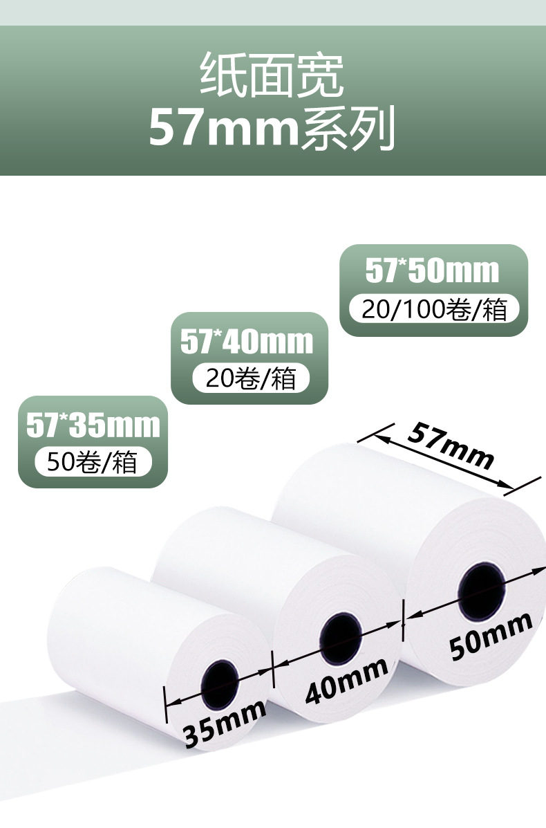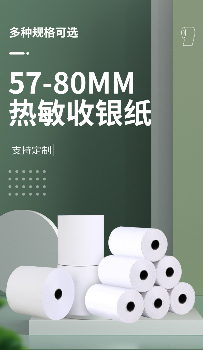 Papel Térmico para Impresión, Papel para Caja Registradora, Papel para Recibos de 57x50mm, Papel para Comida para Llevar de 80*80*60*50, Suministro Exclusivo Transfronterizo