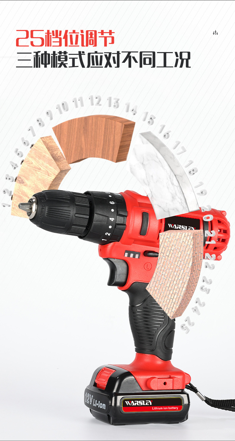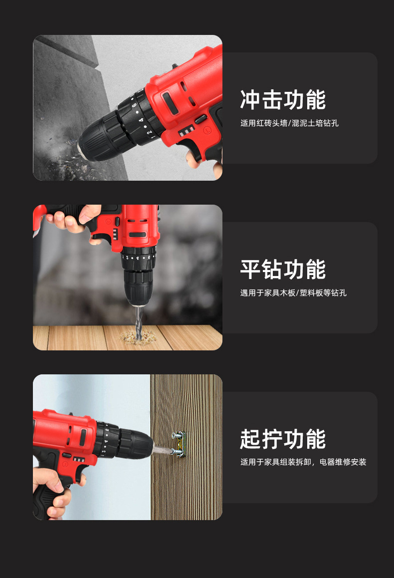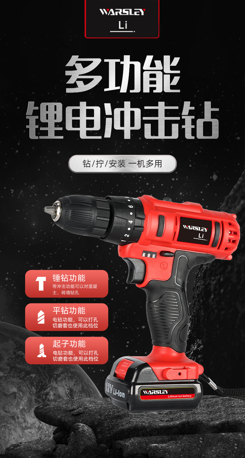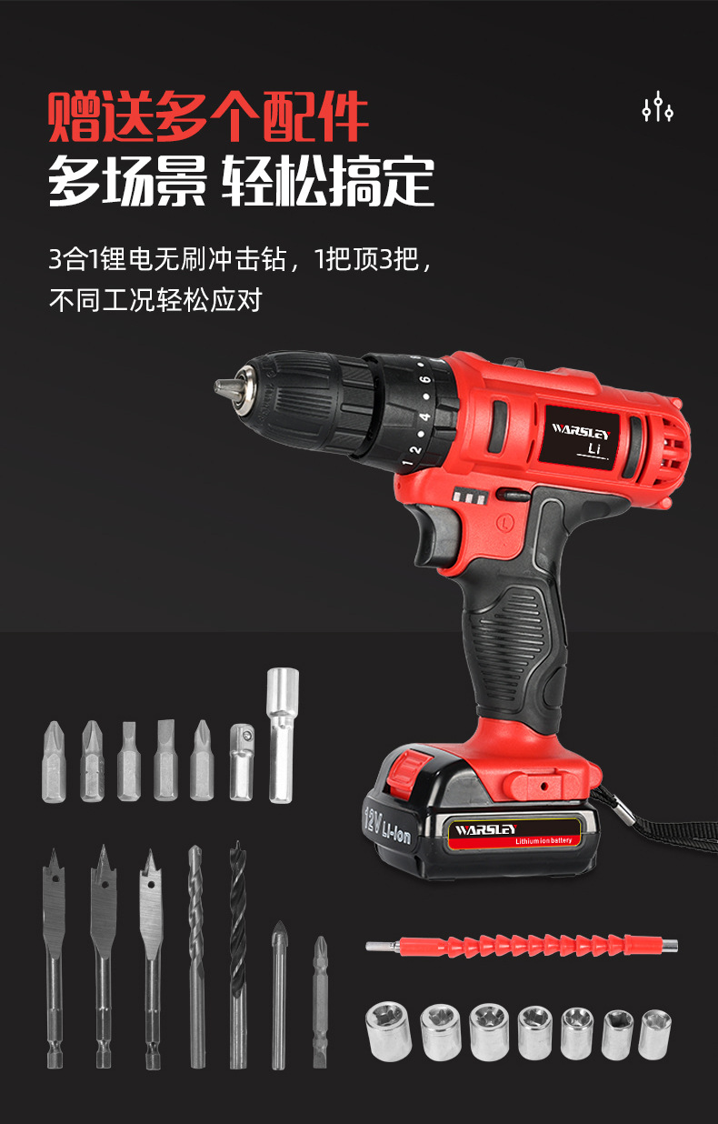 Woshili 12v-21V taladro eléctrico de litio taladro de mano taladro de impacto multifuncional destornillador eléctrico doméstico una máquina multiusos