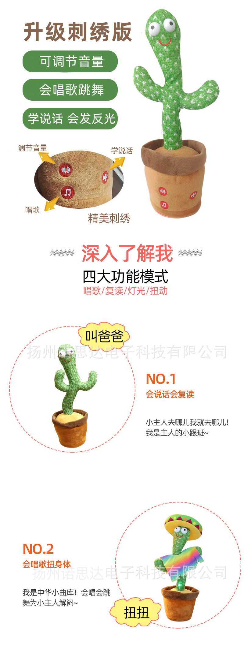 Internet Celebrity mismo cactus eléctrico juguete movimiento arena talla grabación bailando hablando luminoso felpa cactus al por mayor