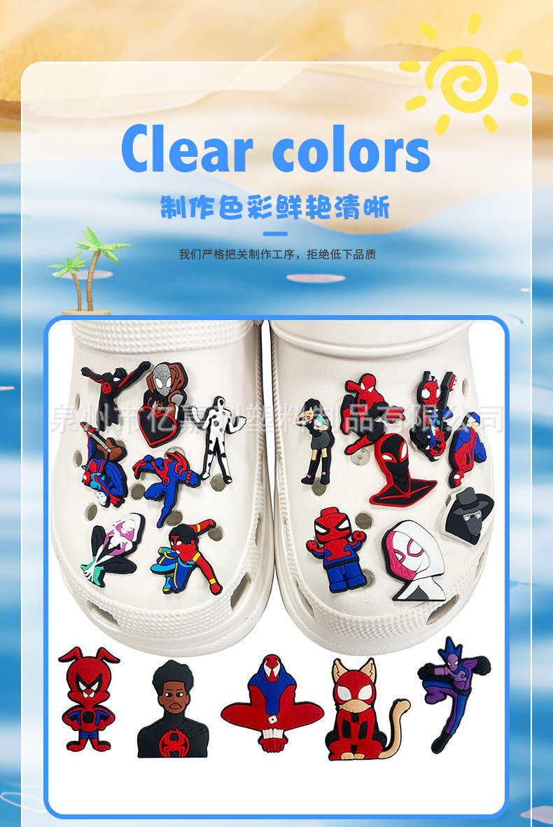 Superhéroe Spider-Man serie Anime agujero zapatos accesorios de jardín zapato flor accesorios de DIY Flor de zapato extraíble