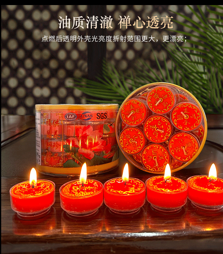 | Artículo No. | Lámpara de adoración de Buda de 4 horas con lámpara de mantequilla de palabra |