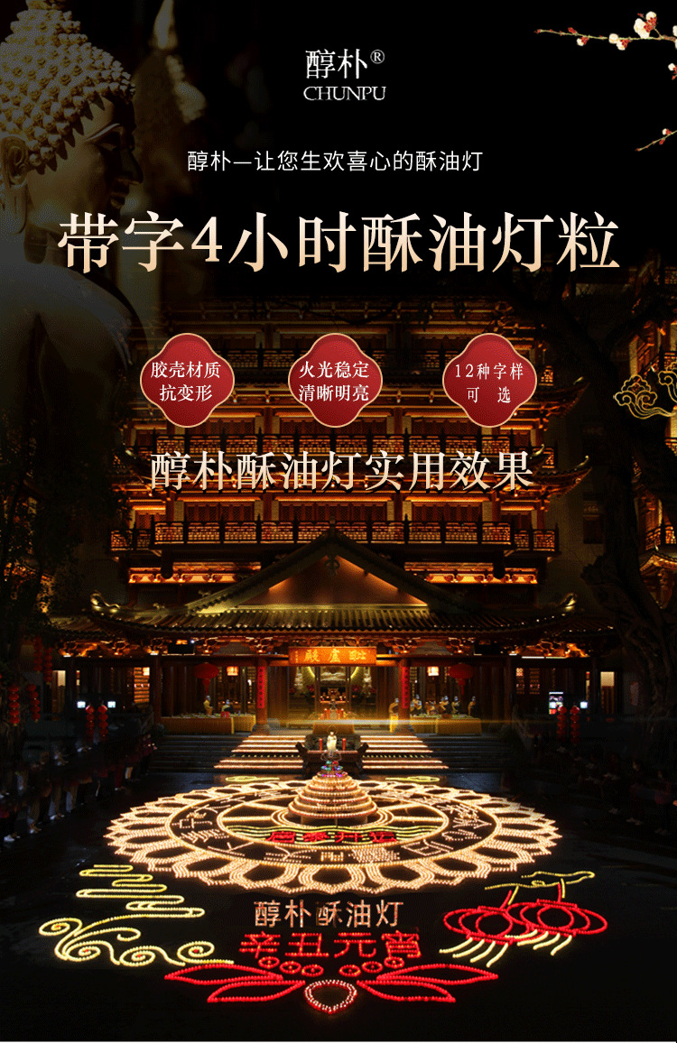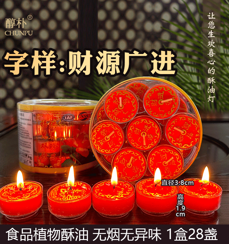 Lámpara de mantequilla con palabras 4 horas Lámpara de adoración de Buda 12 tipos de planta mantequilla vela de humo-libre inodoro multi-palabra lámpara de iluminación
