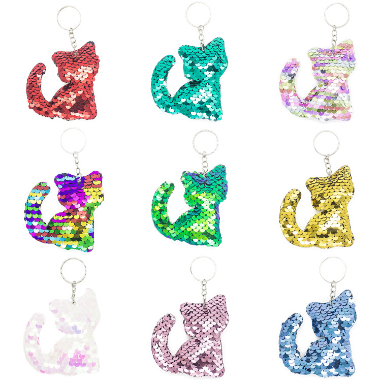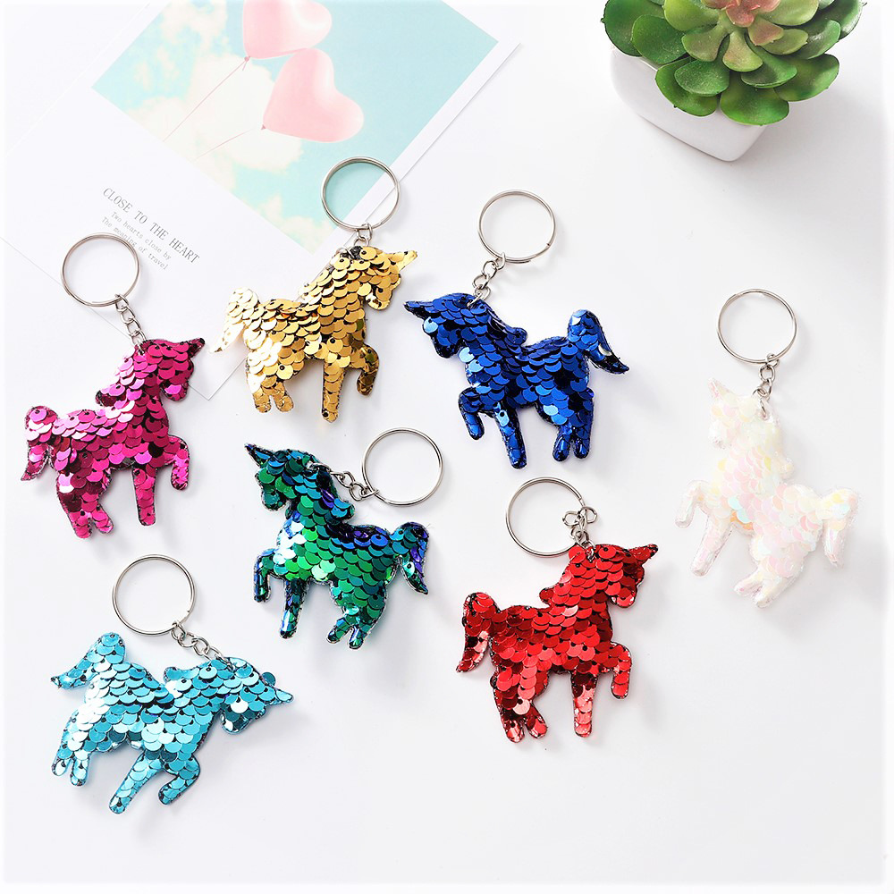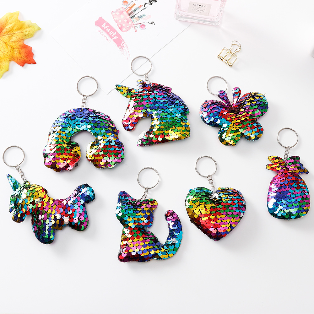 Transfronterizo reflexivo con lentejuelas unicornio llavero Flip colgante sirena bolsa adornos dinosaurio llavero joyería