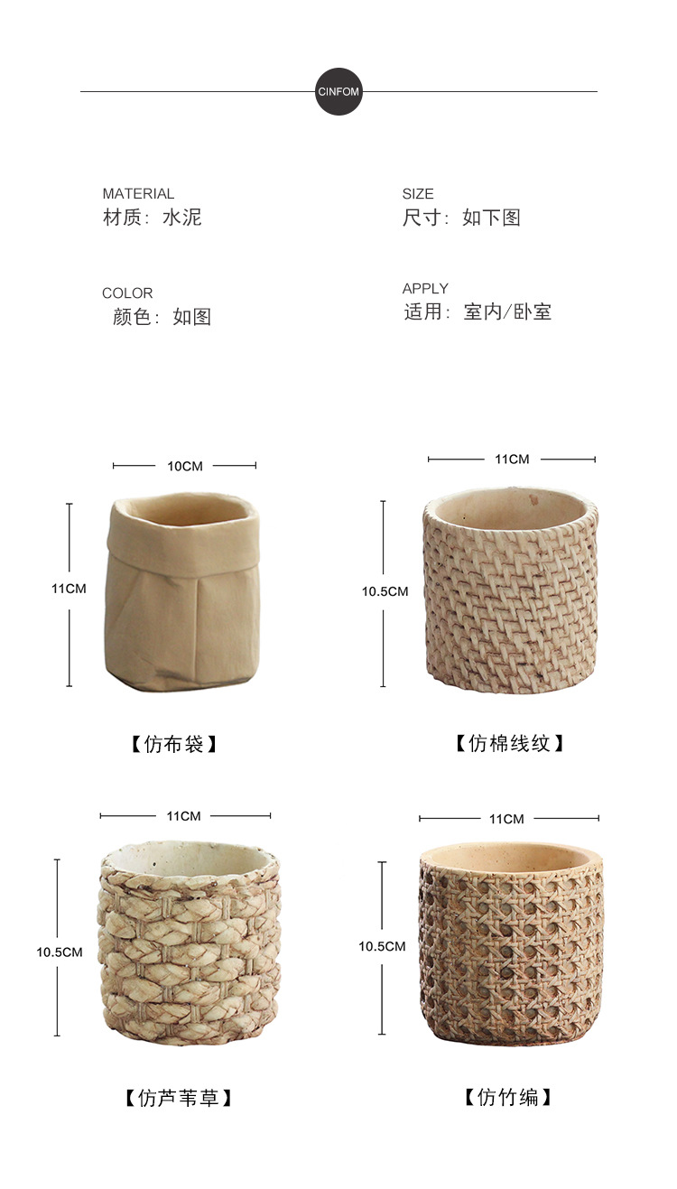 Nordic tejido de cemento maceta Europea creativa bolsa de tela ratán verde maceta de bambú tamaño pequeño Pot ins