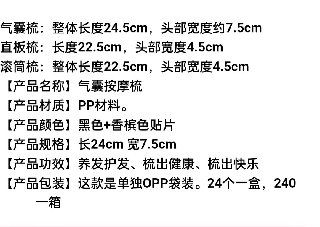 | Color | Airbag peine 9551,Cilindro curling peine 9511,Peine plano 9543,Costilla peine 9552,Comb-50X plana,Peine de cola puntiaguda,Apretón limpio,Peine de Osaka |