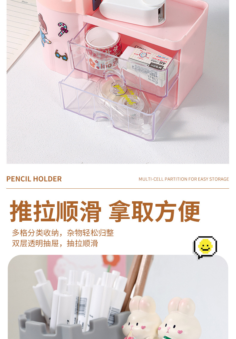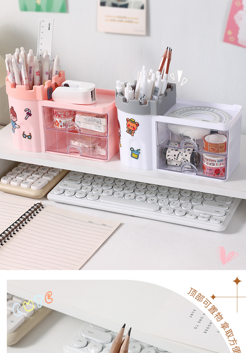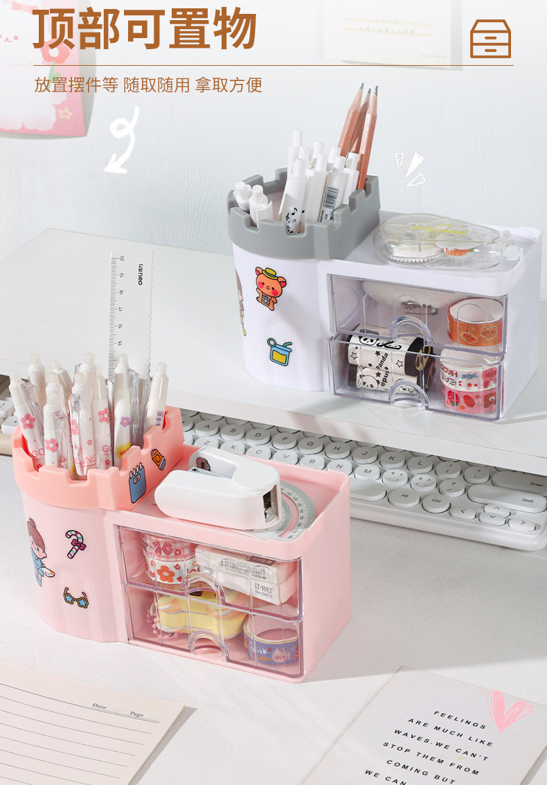 Portalápices ins de alto valor creativo de dibujos animados metal cuadrado estudiante niña corazón oficina escritorio caja de almacenamiento al por mayor