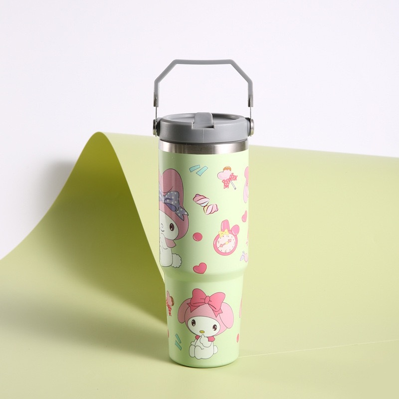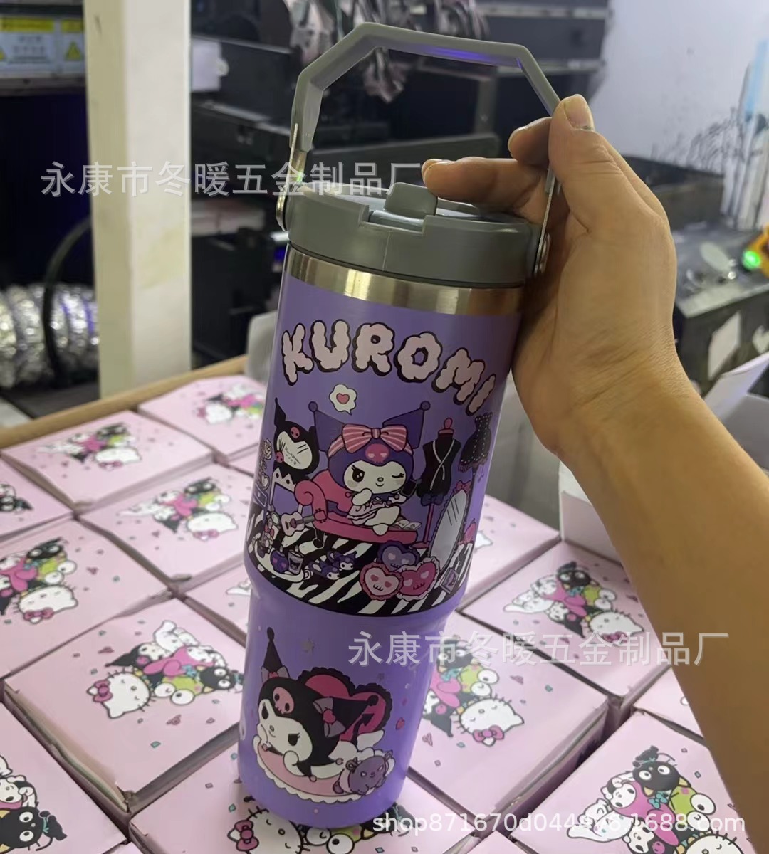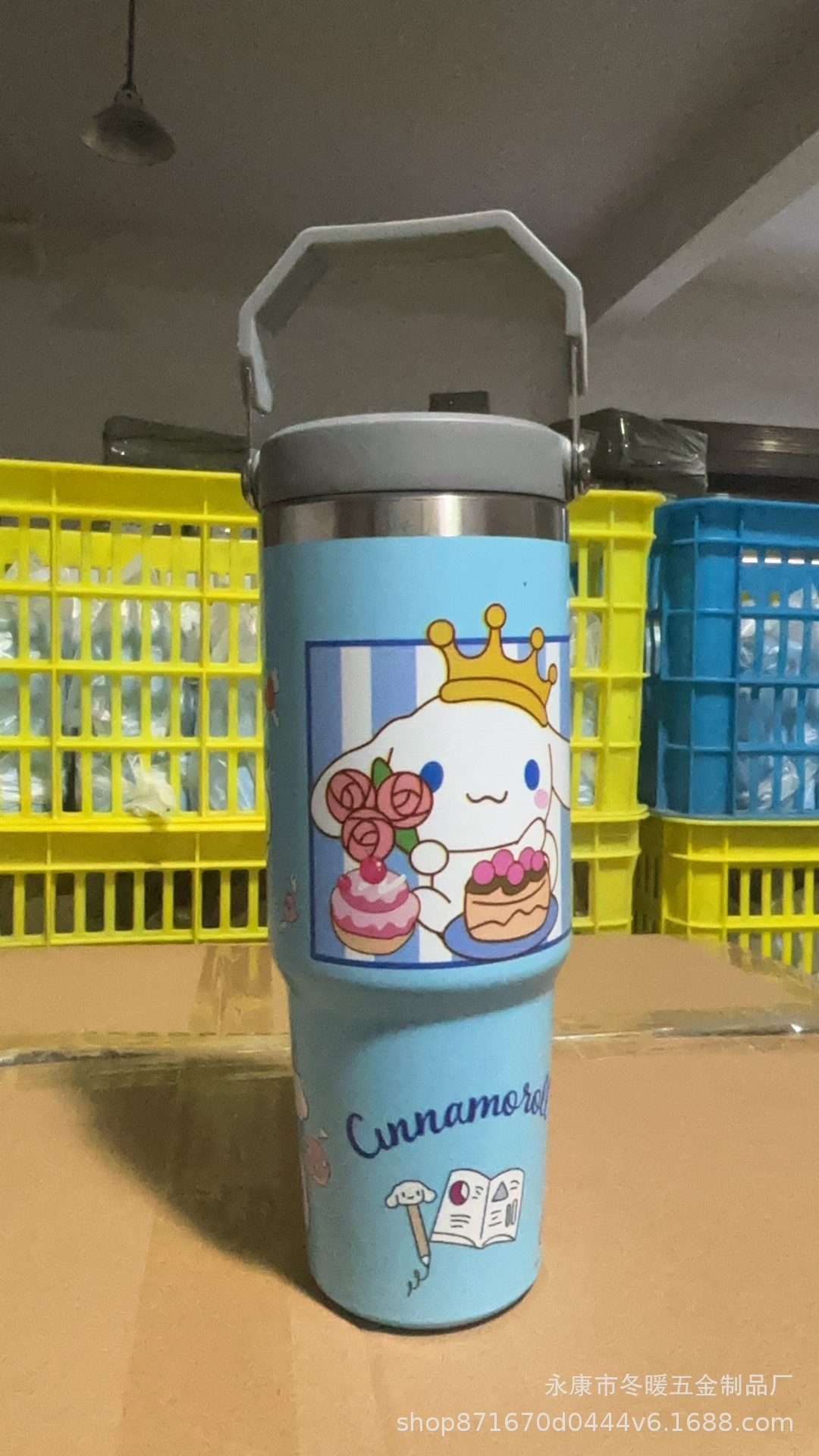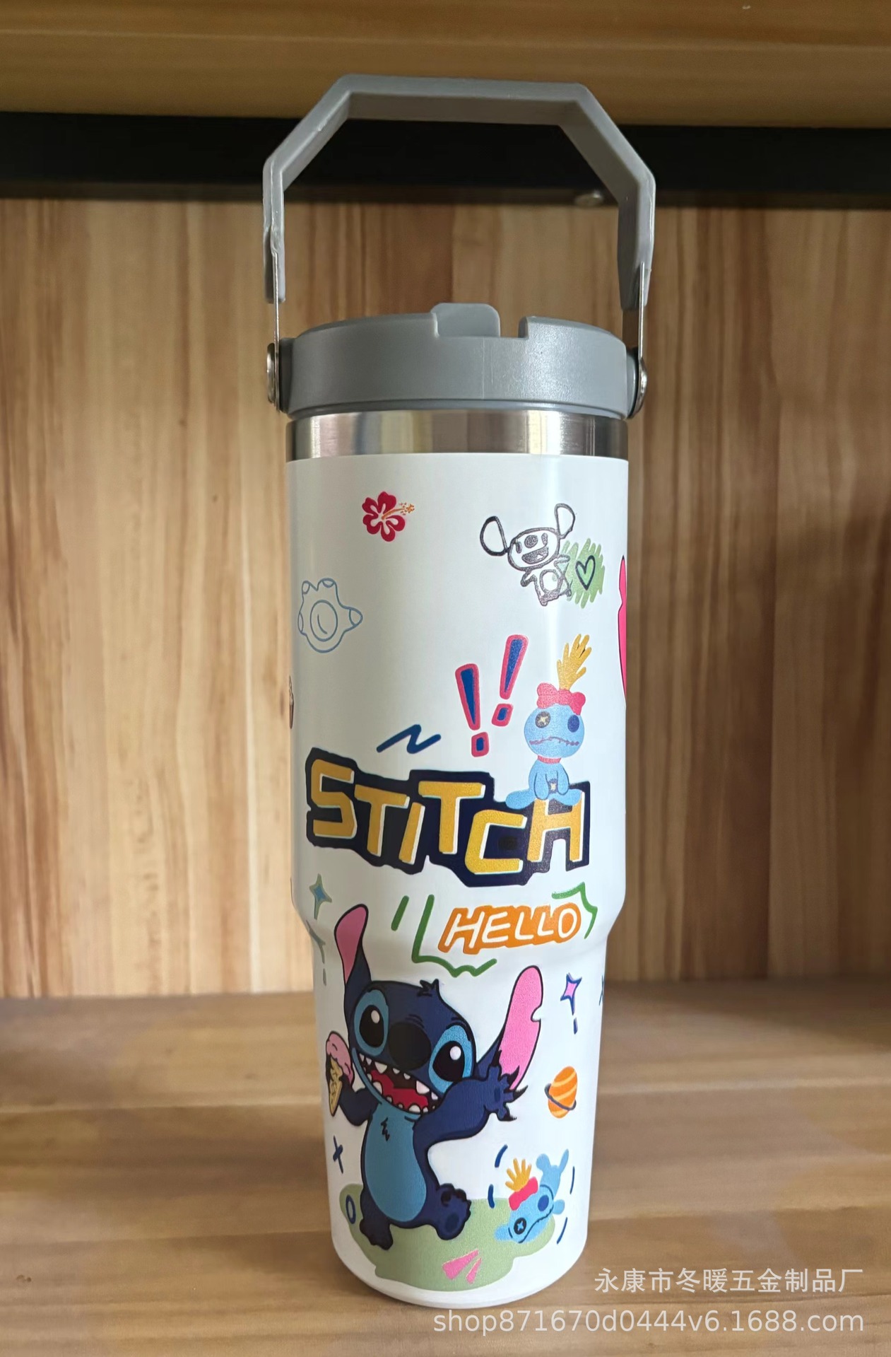 Nuevo 30oz taza de coche patrón de dibujos animados de gran capacidad de acero inoxidable termo de vacío taza de alta apariencia portátil mango de hielo