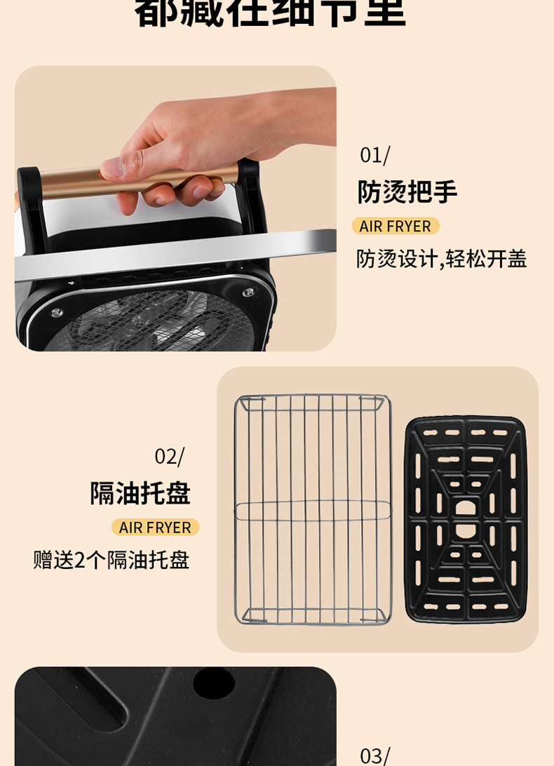 Aire freidora hogar multifuncional automática inteligente de gran capacidad freidora calidad exportación freidora