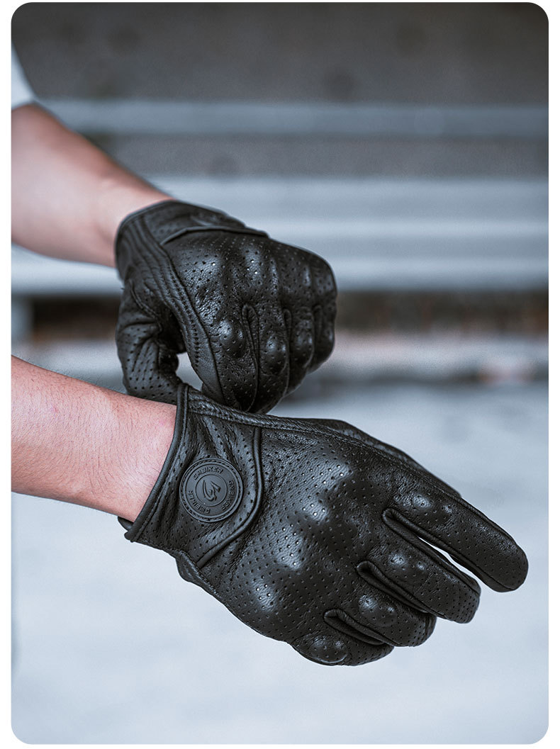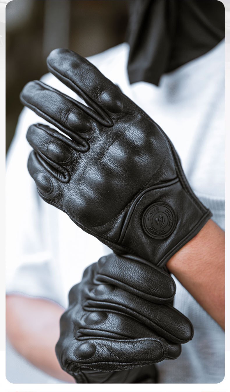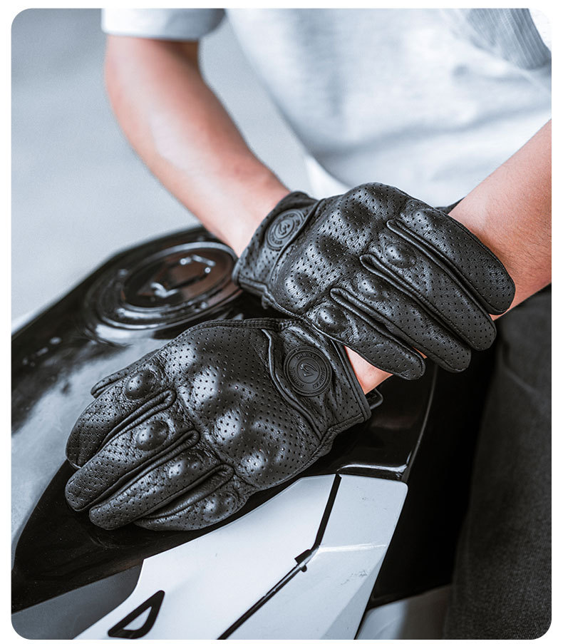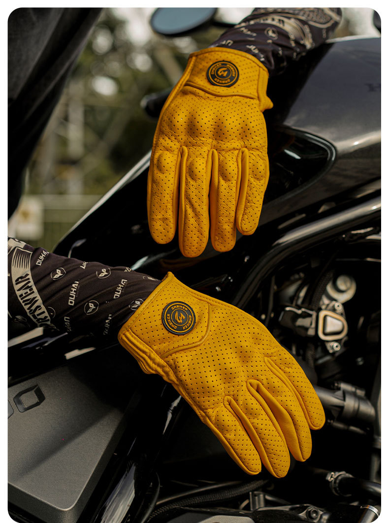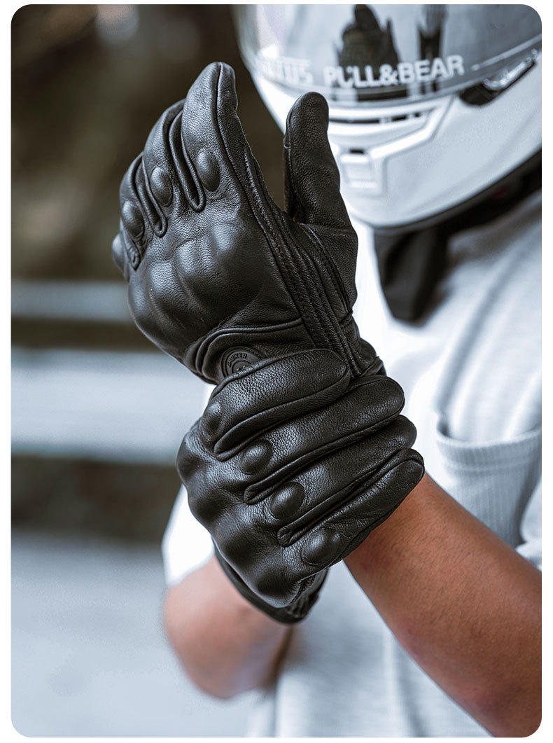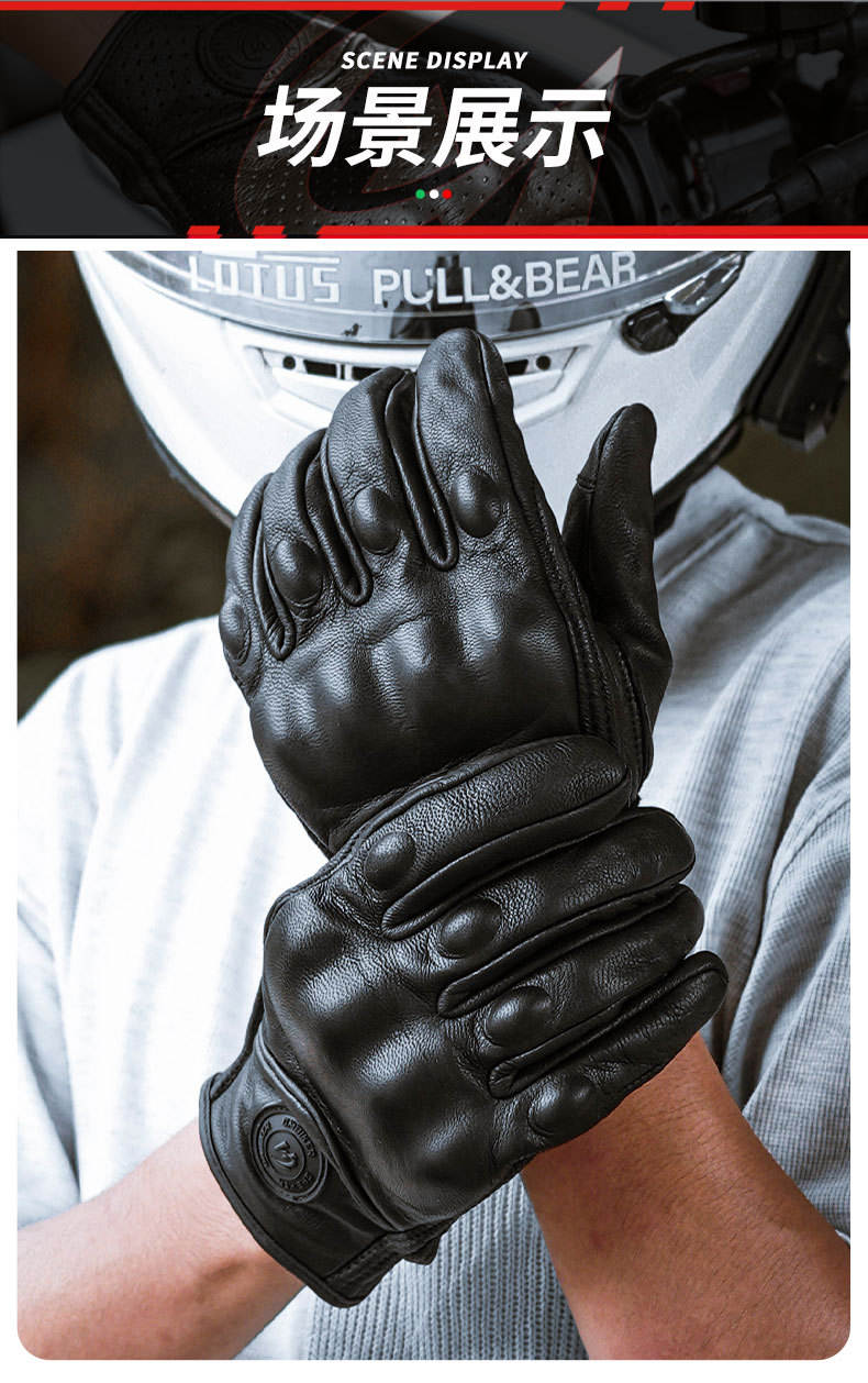 Motocicleta guantes de piel de oveja retro motociclista montar cuatro estaciones a prueba de viento, transpirable, a prueba de caídas, cálido otoño verano invierno