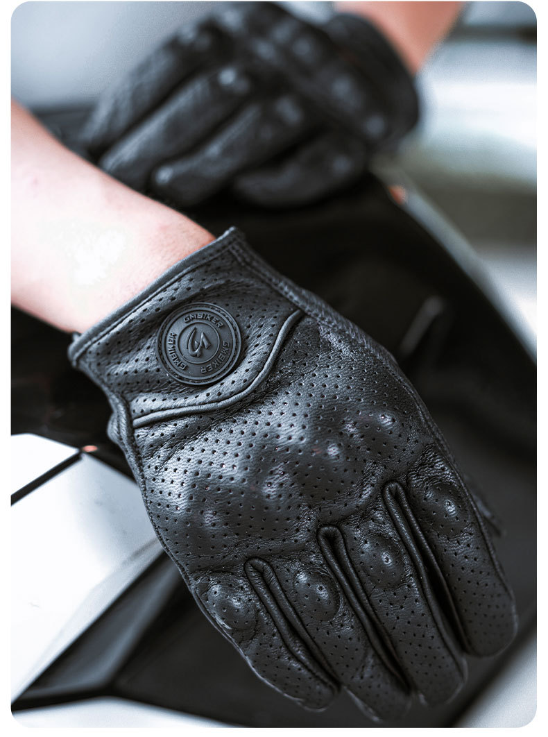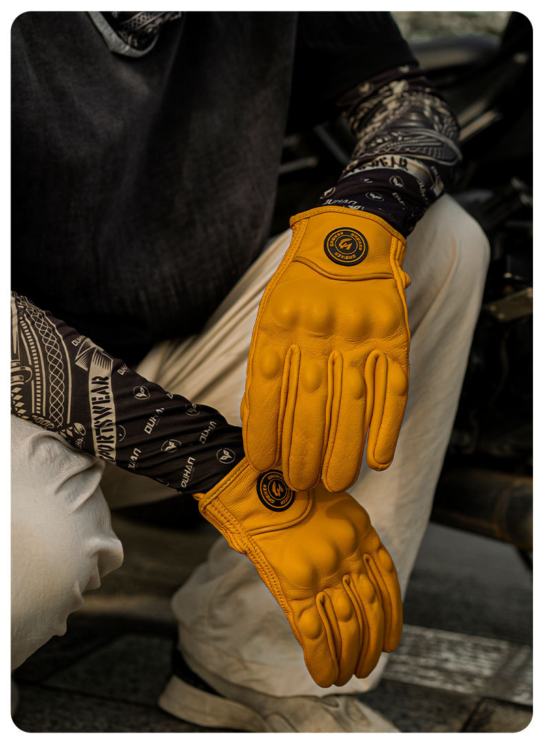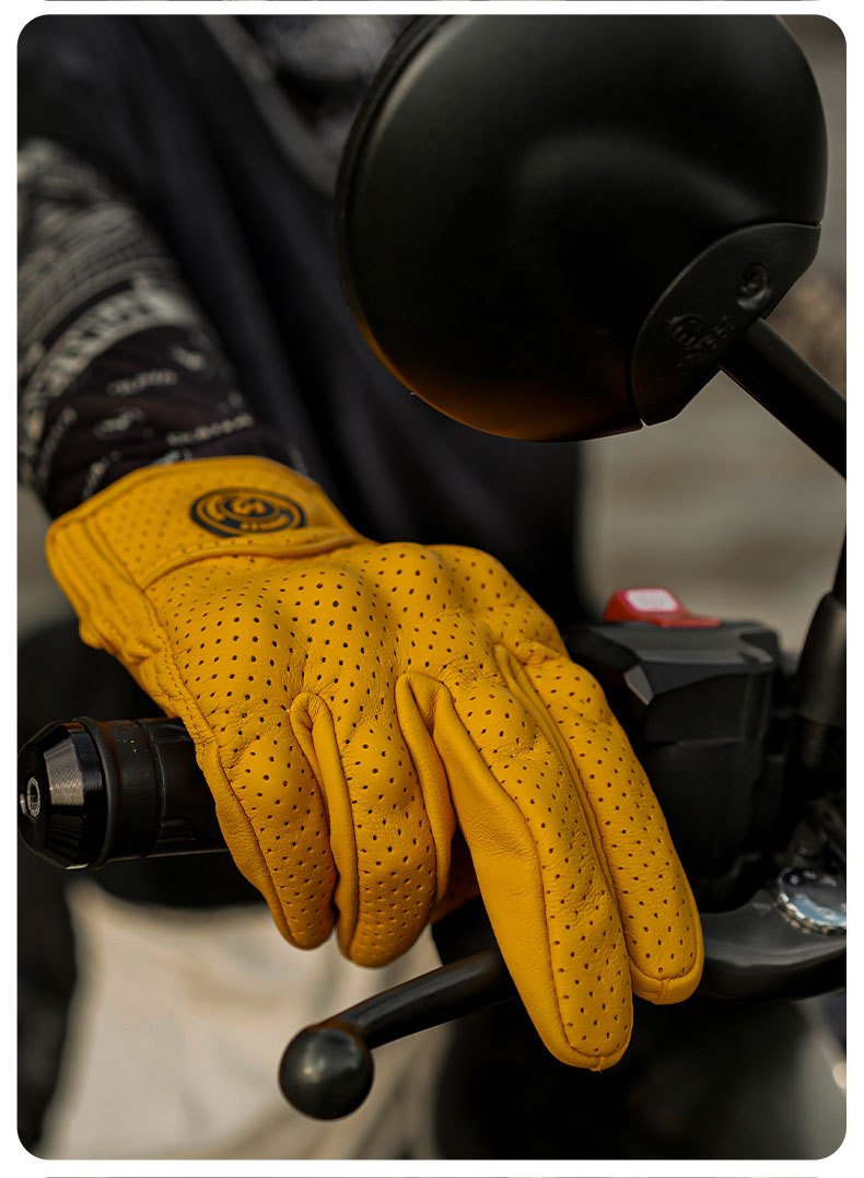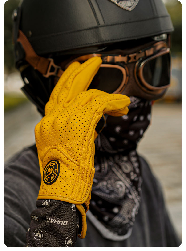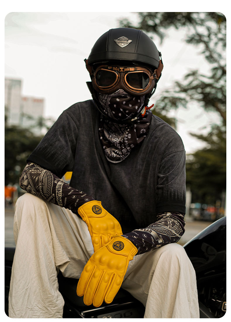 Motocicleta guantes de piel de oveja retro motociclista montar cuatro estaciones a prueba de viento, transpirable, a prueba de caídas, cálido otoño verano invierno