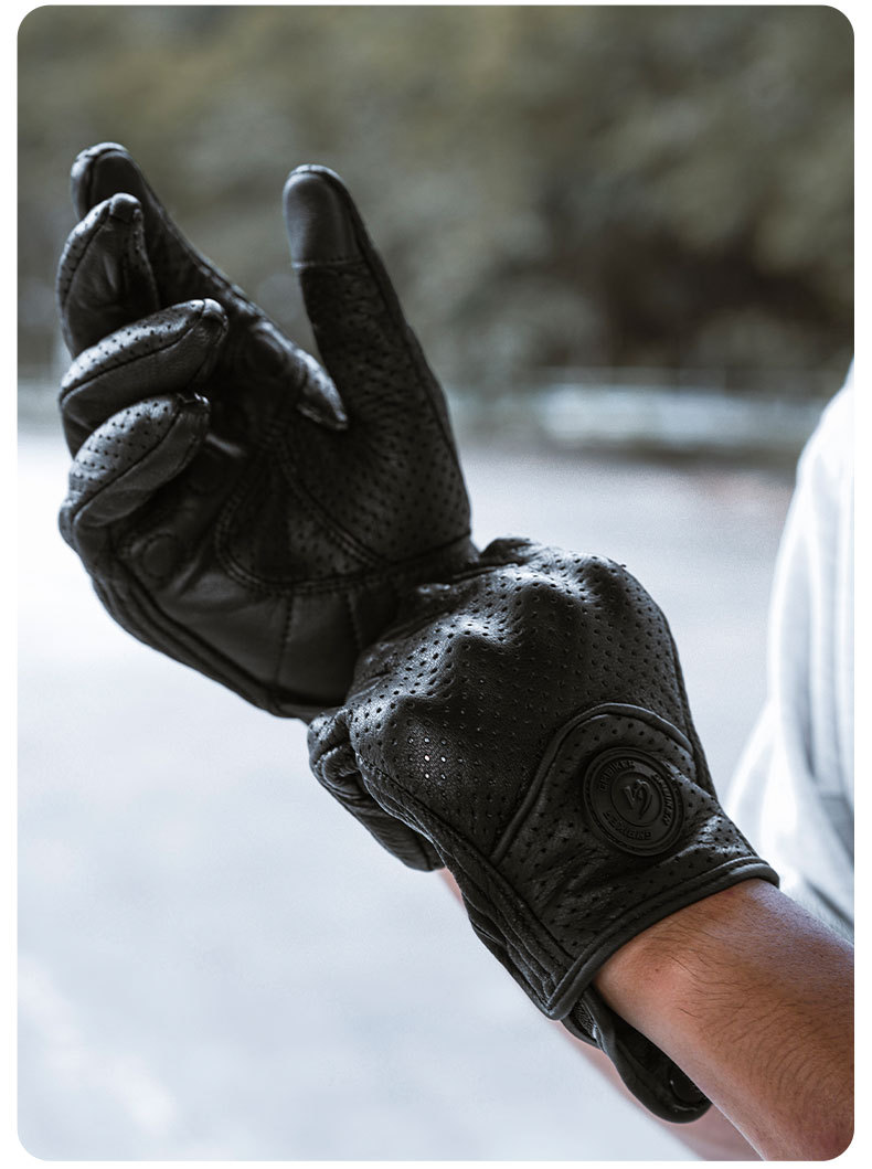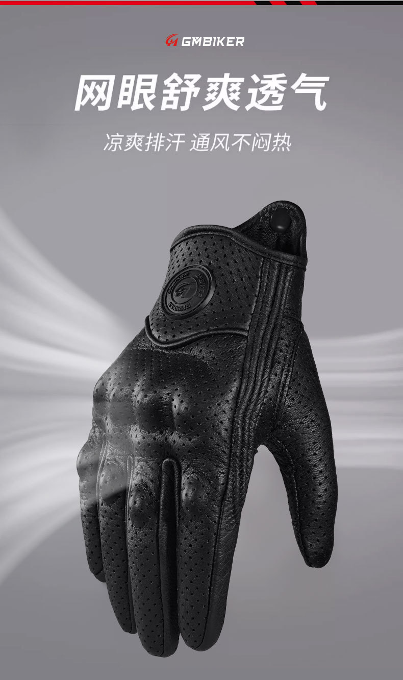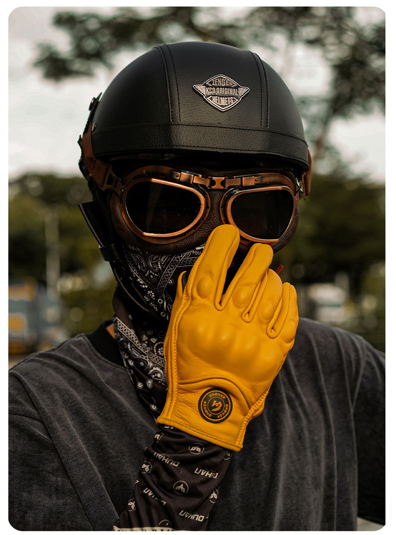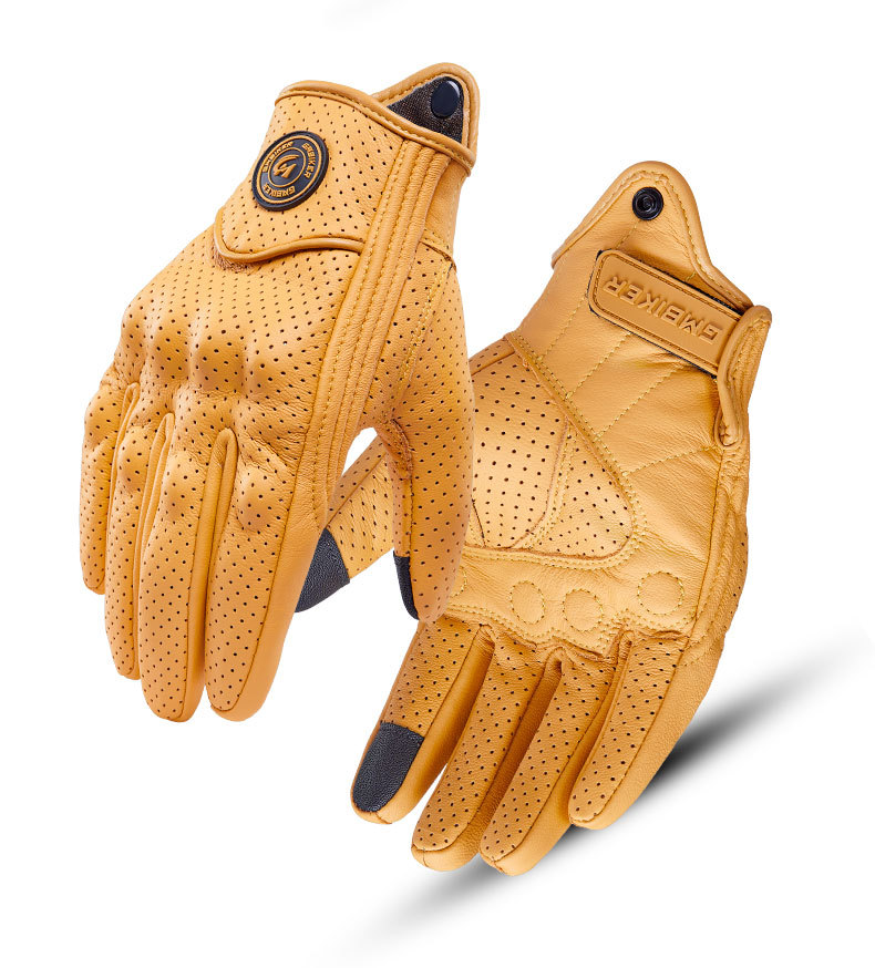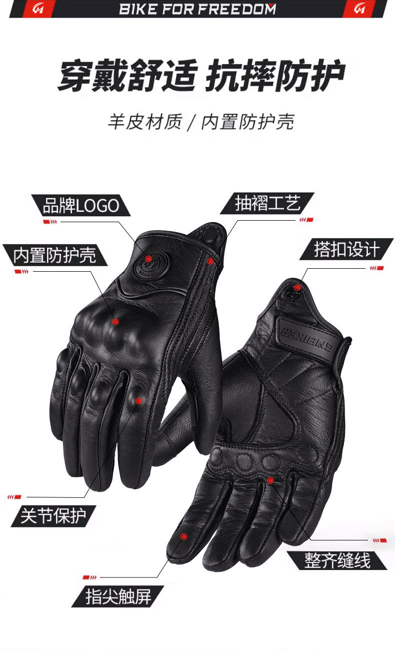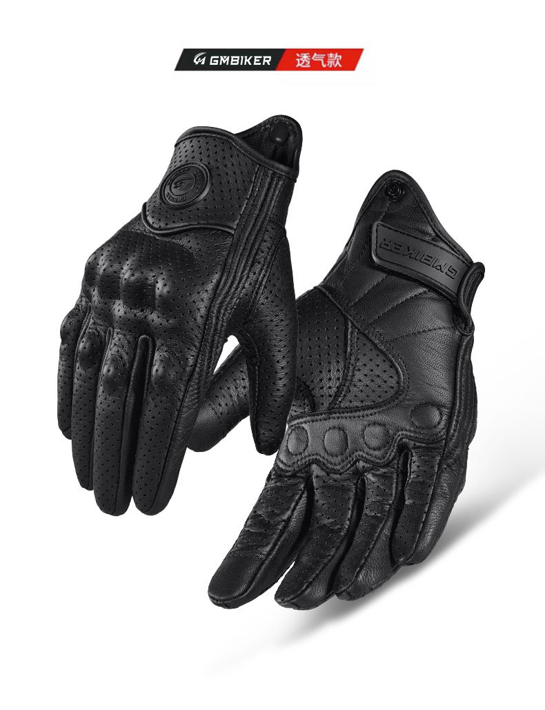 Motocicleta guantes de piel de oveja retro motociclista montar cuatro estaciones a prueba de viento, transpirable, a prueba de caídas, cálido otoño verano invierno