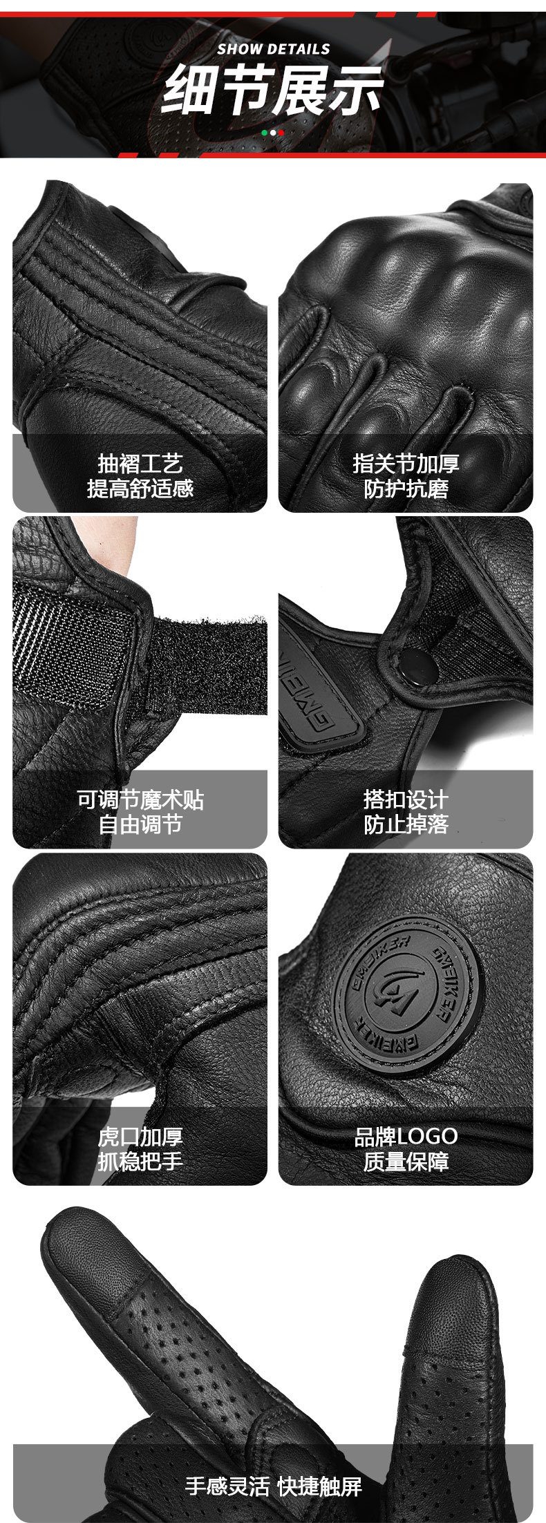 ![[Negro] Estilo a prueba de viento de cuero puro, pantalla táctil, anti-caída, resistente al desgaste y antideslizante](https://cbu01.alicdn.com/img/ibank/O1CN01C4XR7U1l0l3NuGhf6_!!2215187744757-0-cib.jpg)