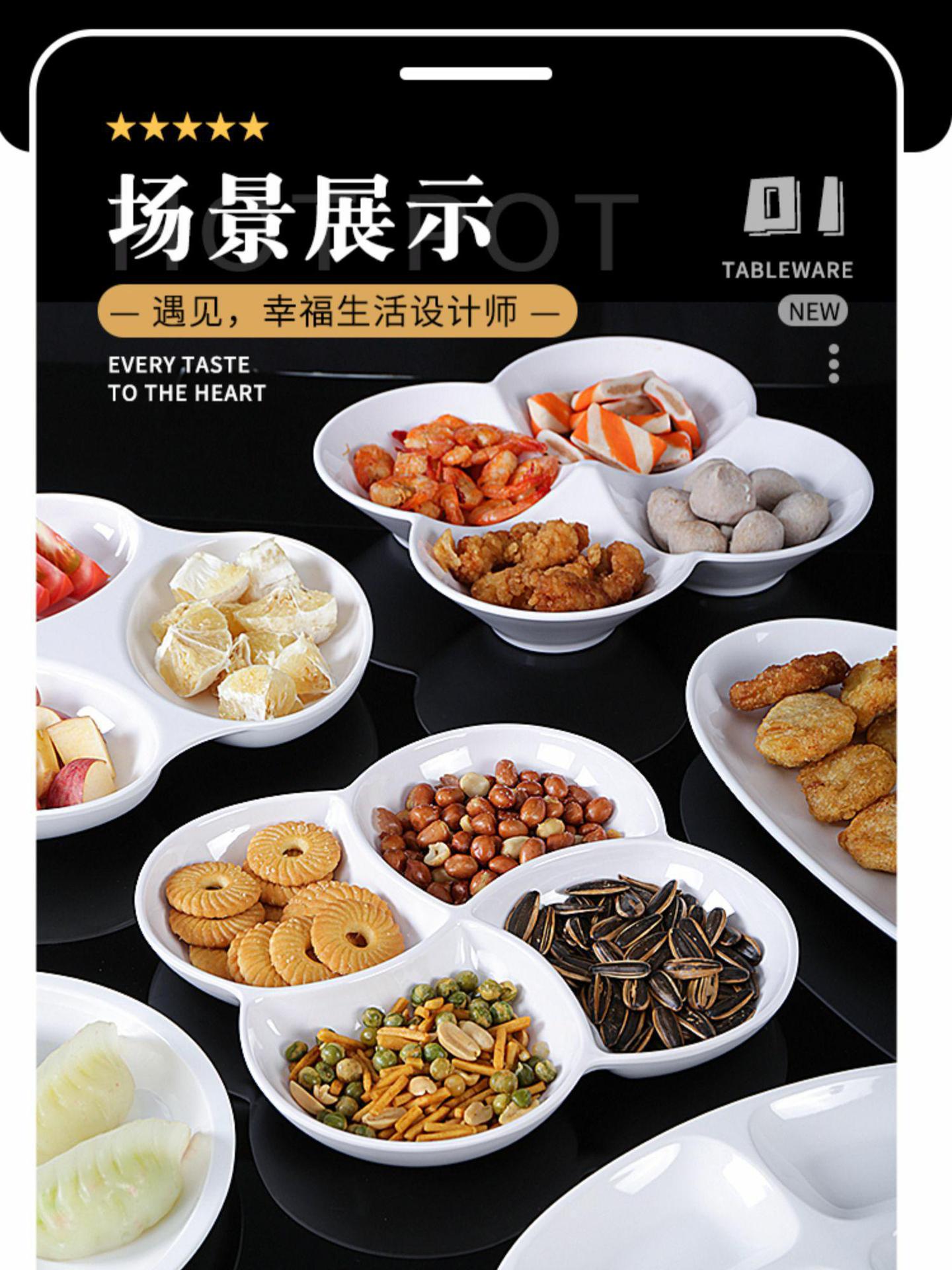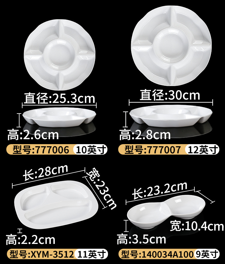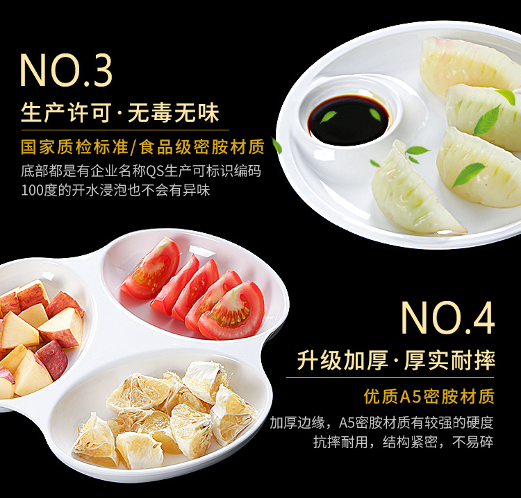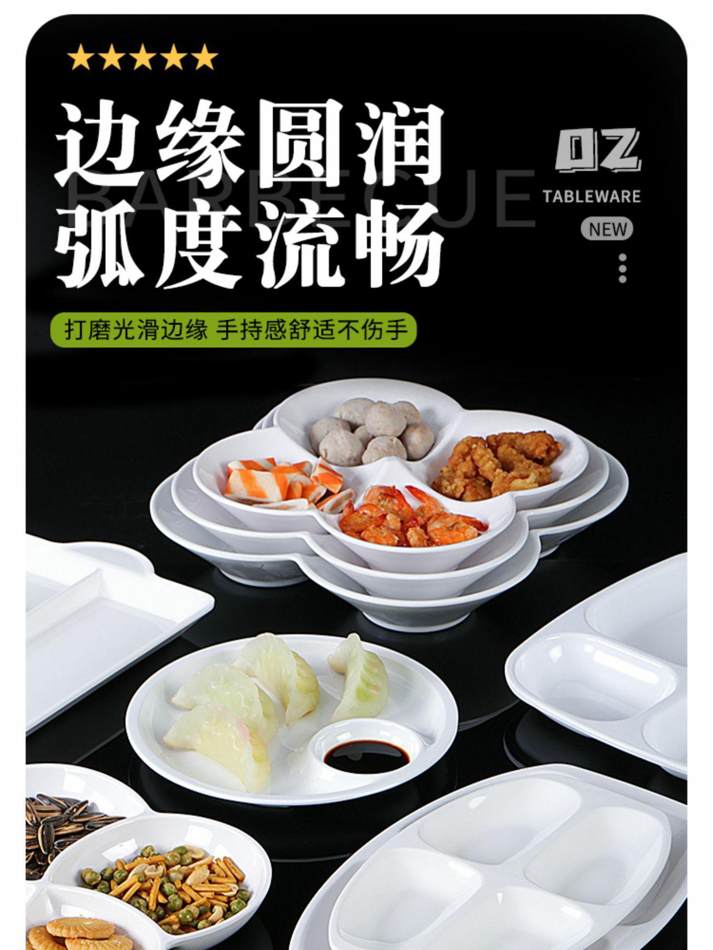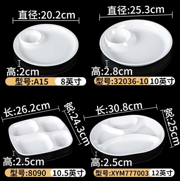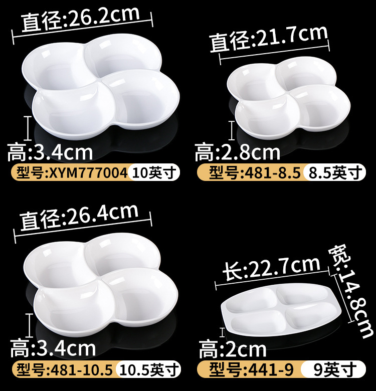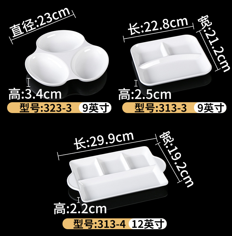 Plato de melamina plato de cena tres-rejilla cuatro-rejilla cinco-rejilla comida multi-rejilla compartimiento de reducción de grasa plato de plástico plato de aperitivo plato de porcelana de imitación