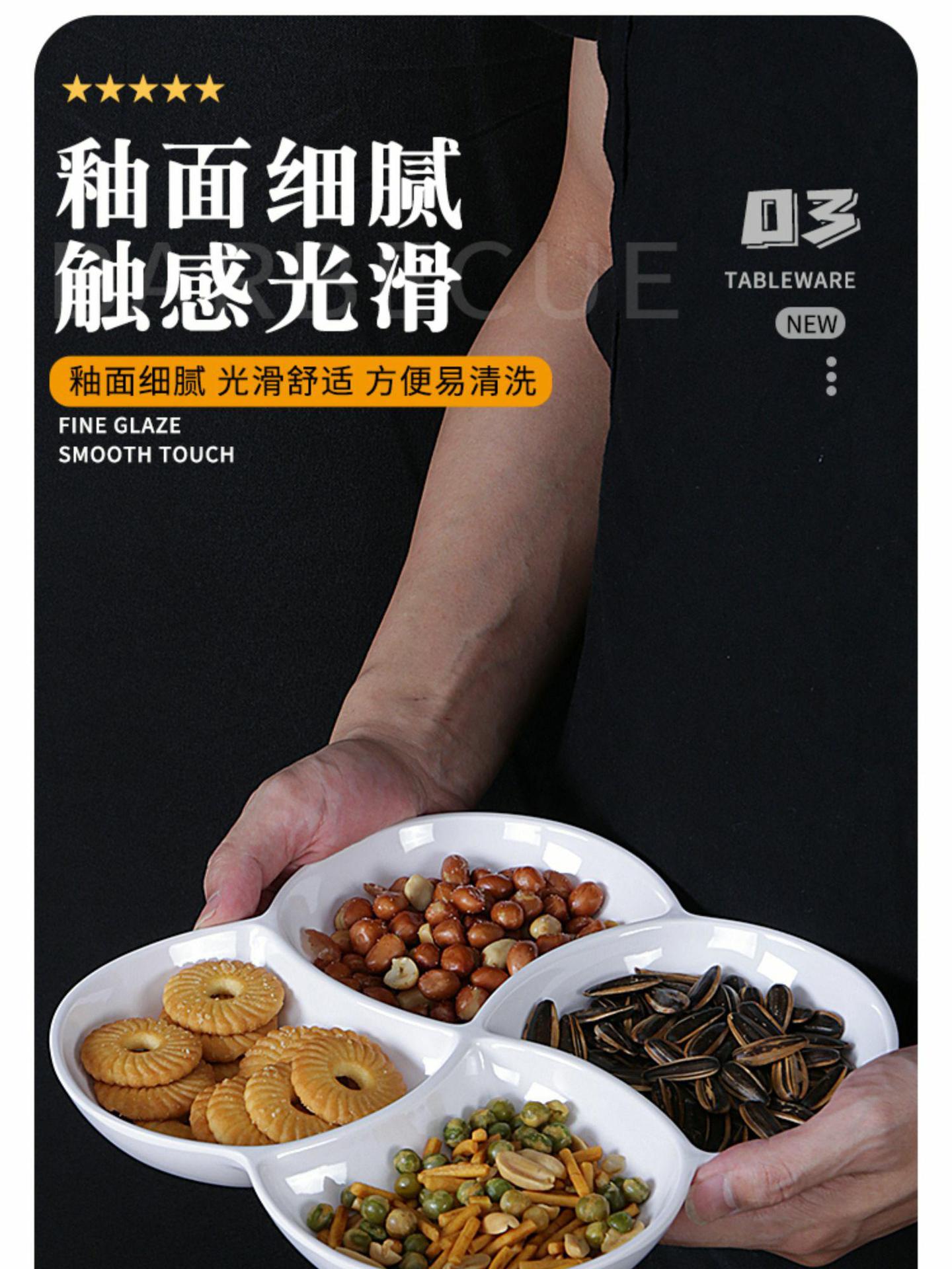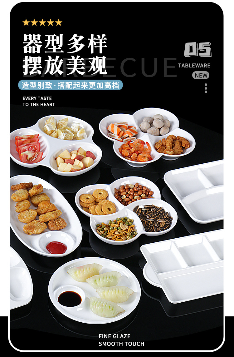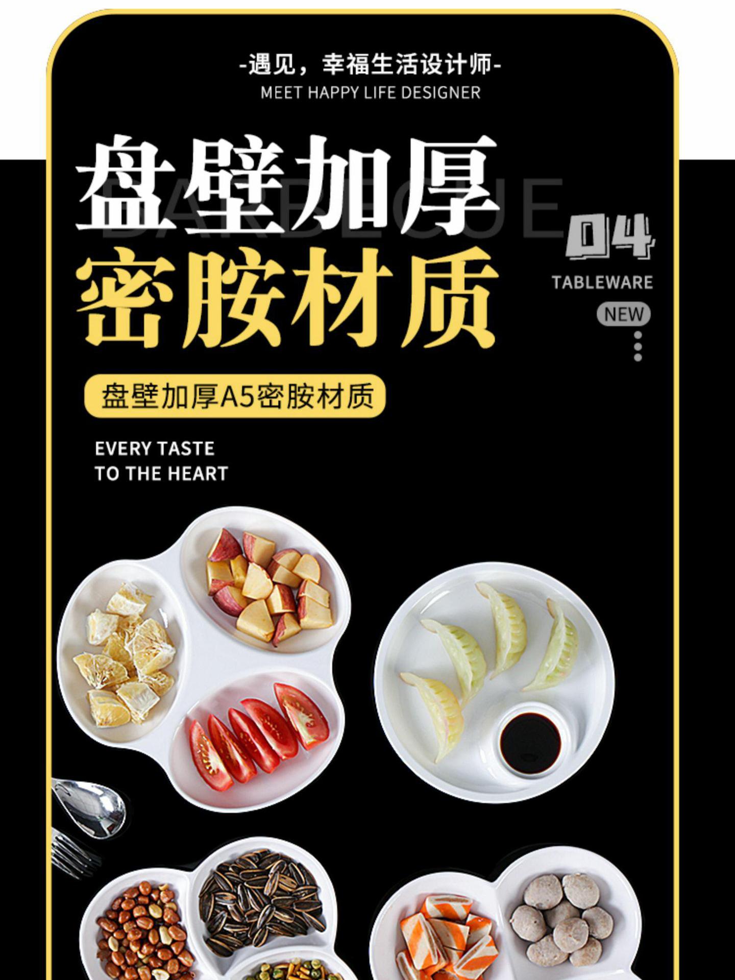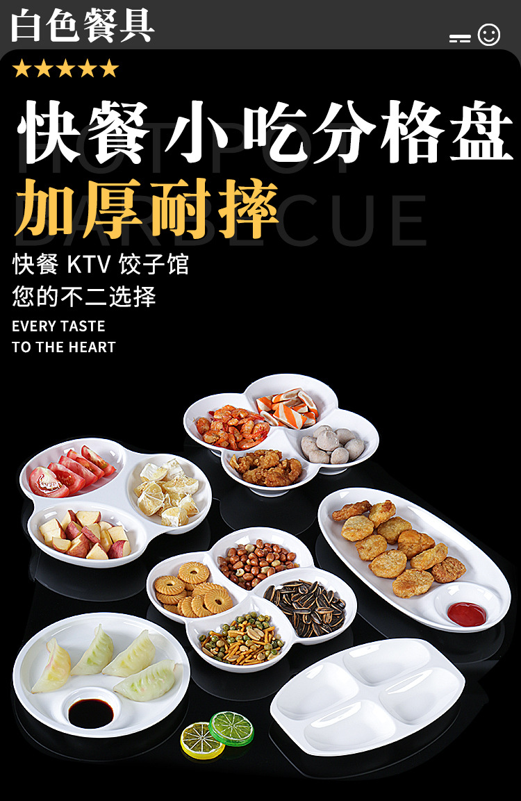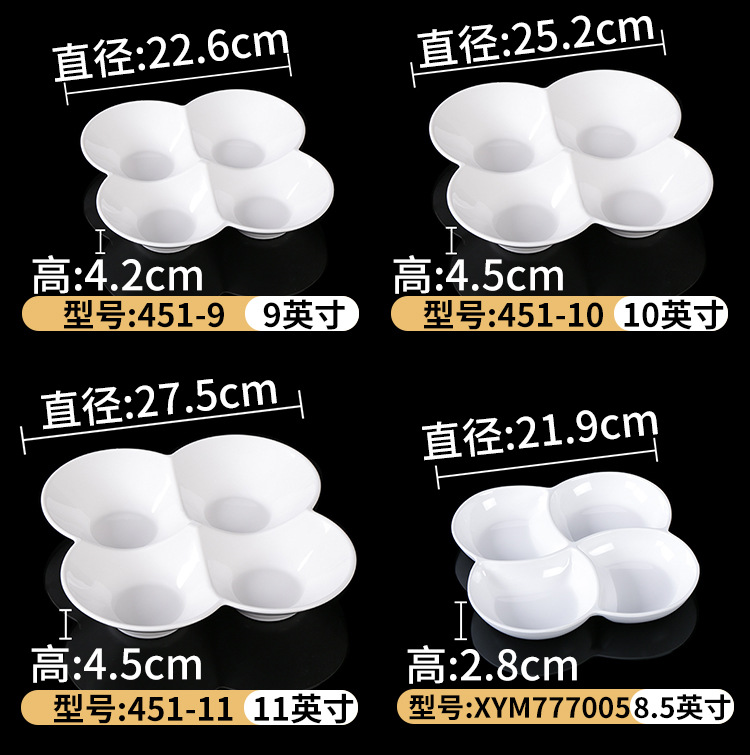 Plato de melamina plato de cena tres-rejilla cuatro-rejilla cinco-rejilla comida multi-rejilla compartimiento de reducción de grasa plato de plástico plato de aperitivo plato de porcelana de imitación