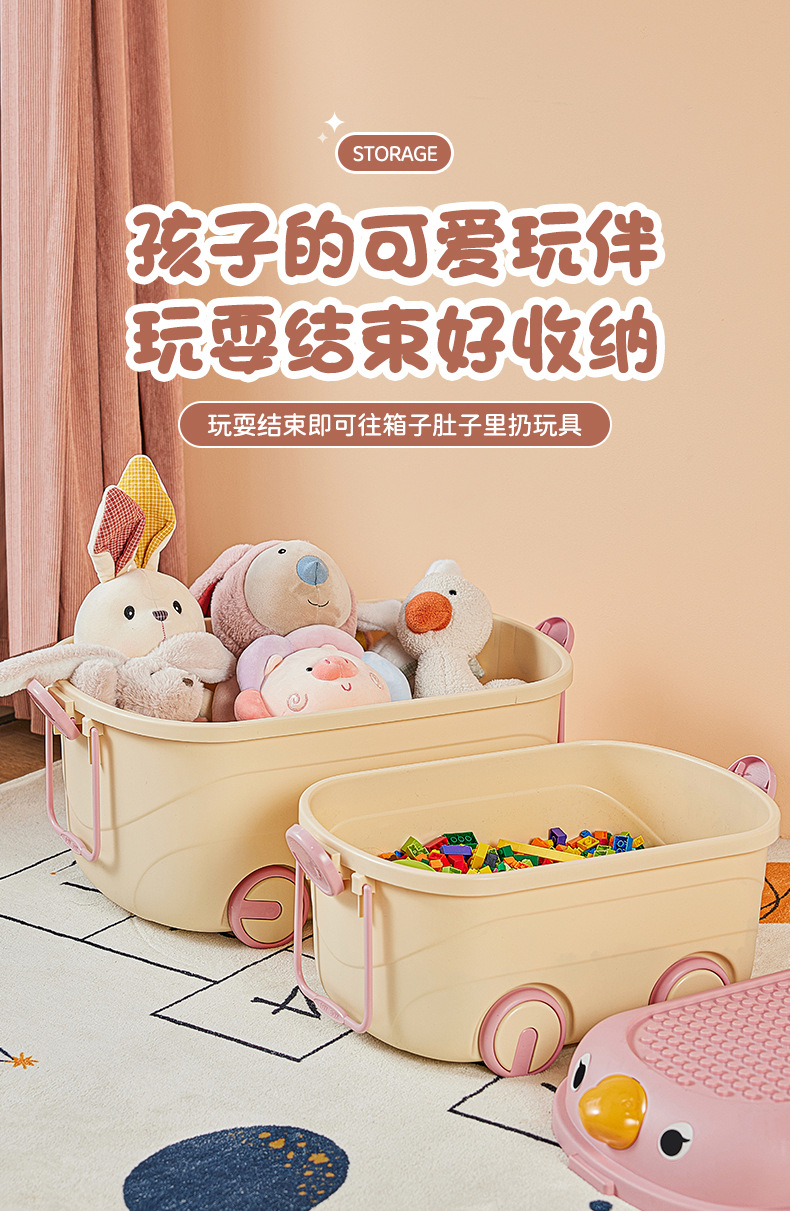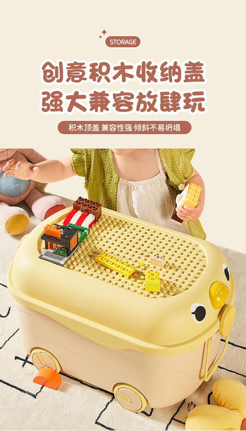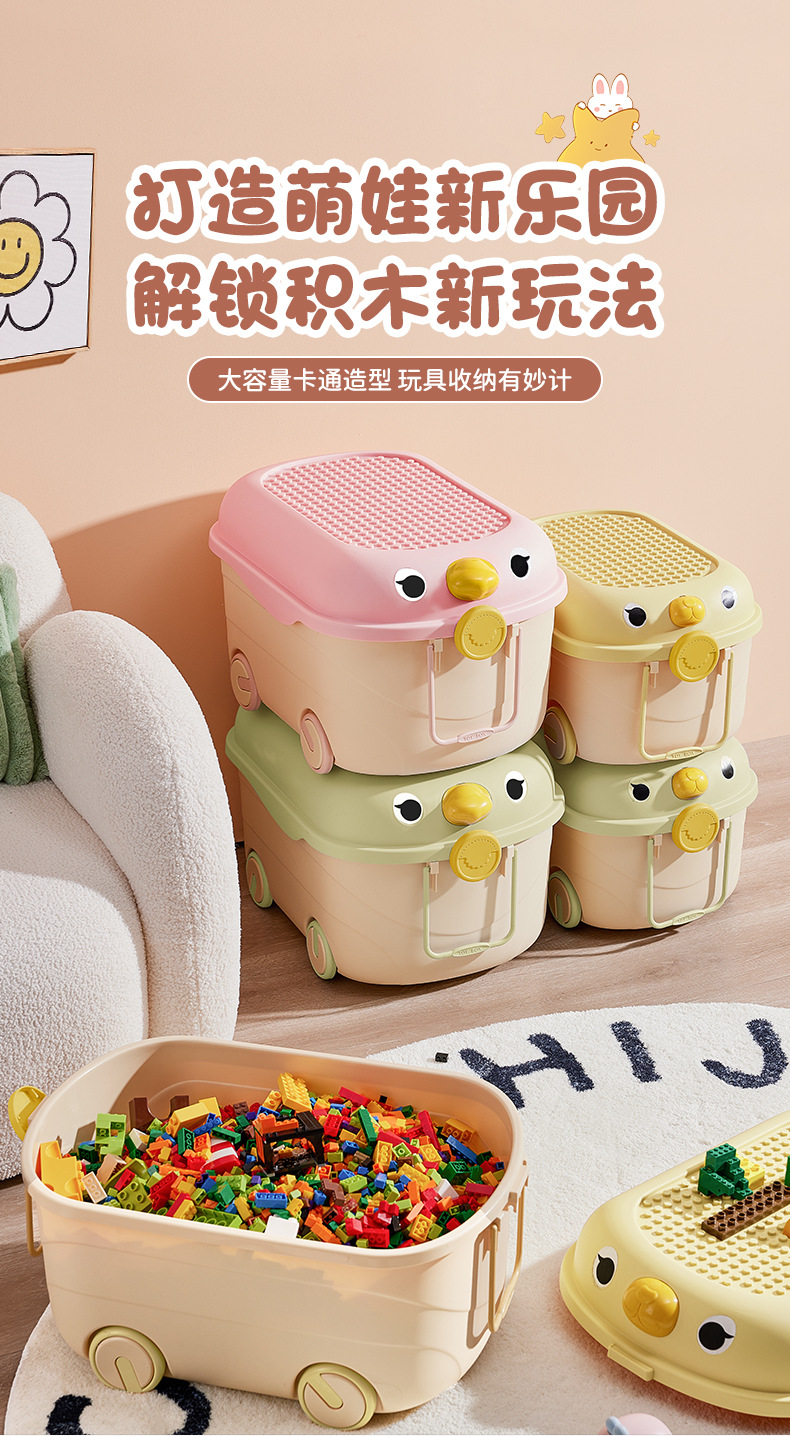 Caja de almacenamiento de juguetes de dibujos animados para niños lindos bloques de construcción móvil de rodillos lindos caja de almacenamiento de organización caja de almacenamiento de gran capacidad