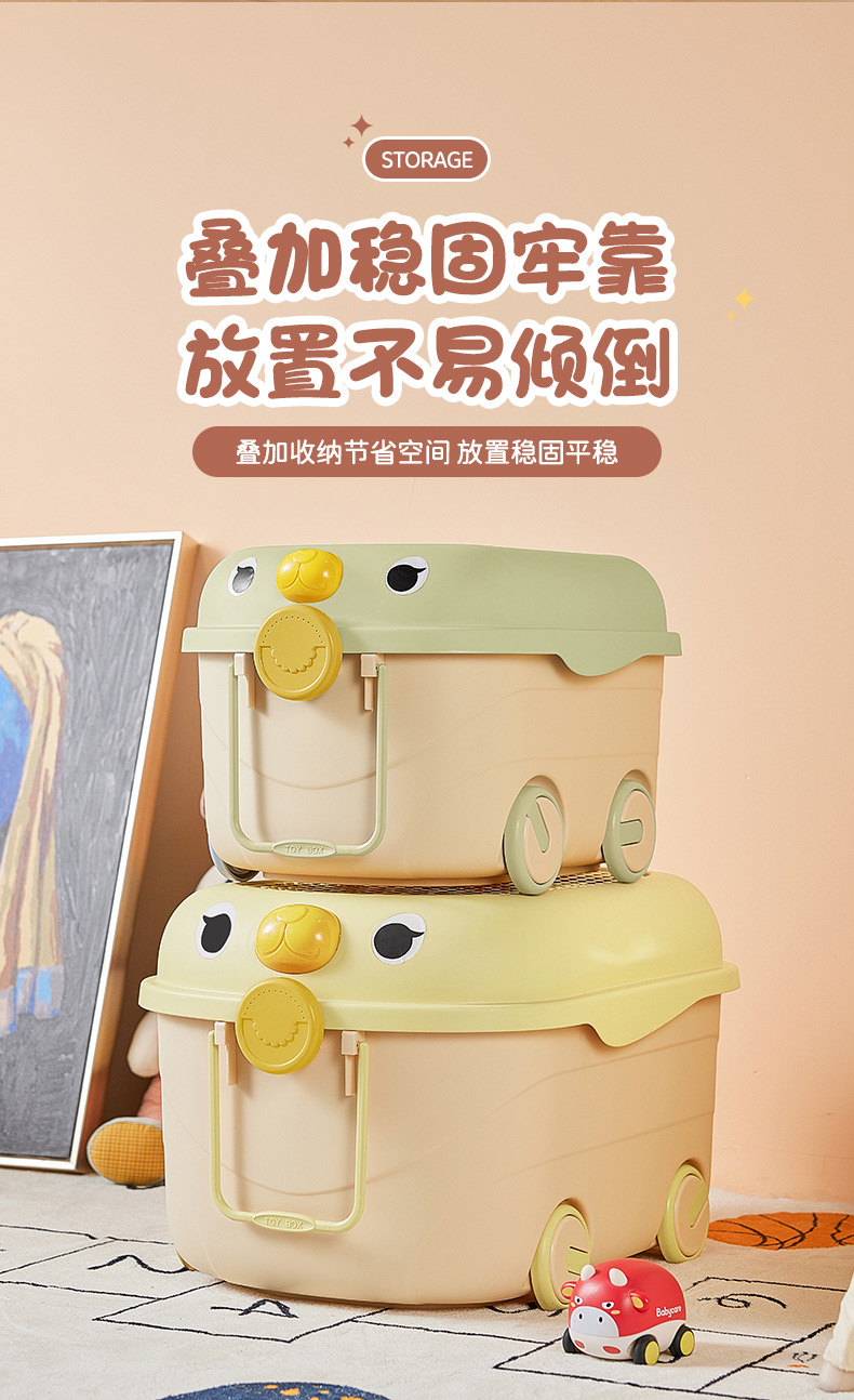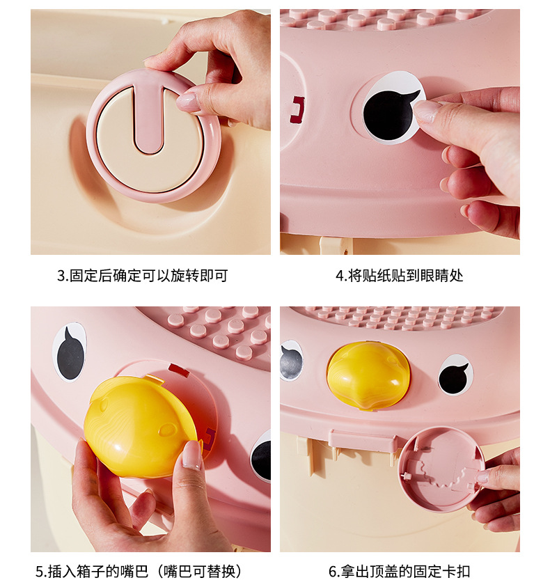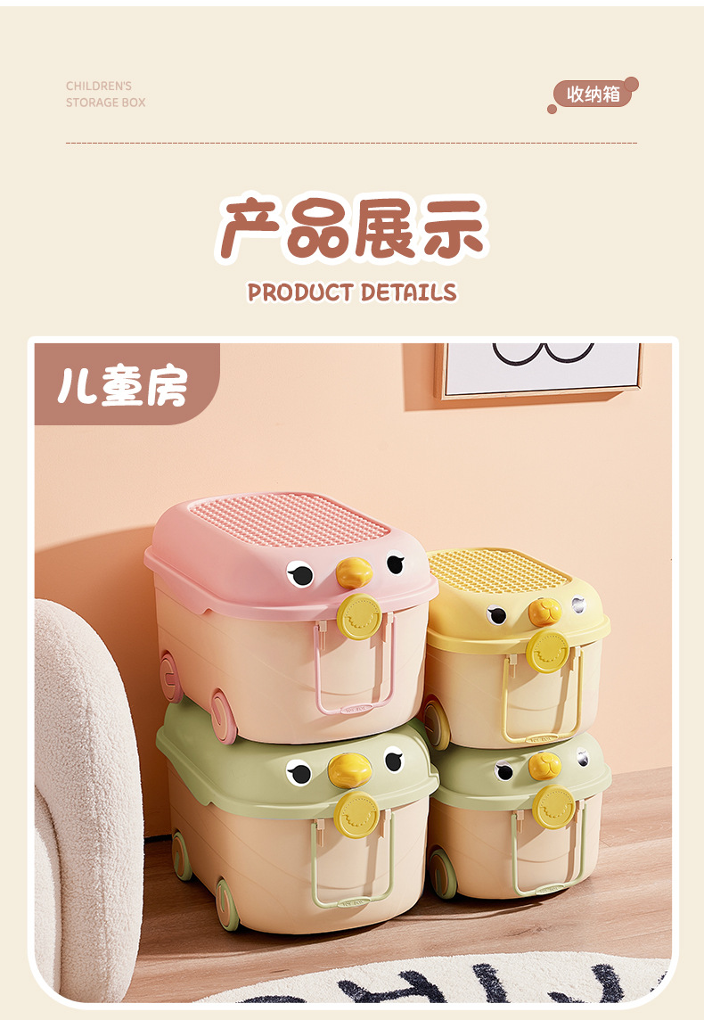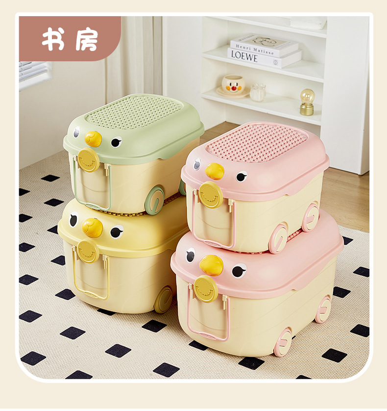 Caja de almacenamiento de juguetes de dibujos animados para niños lindos bloques de construcción móvil de rodillos lindos caja de almacenamiento de organización caja de almacenamiento de gran capacidad