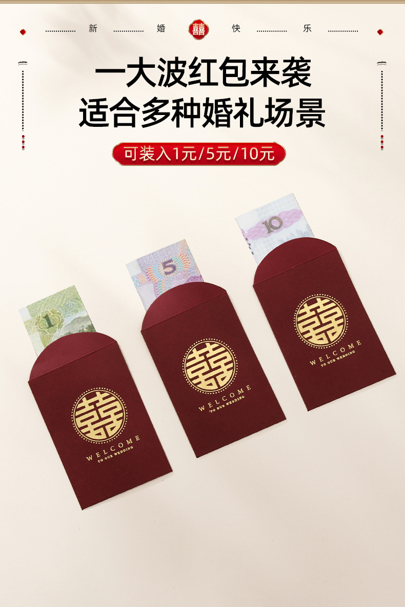 Pareja de bodas mini sobre rojo especial tamaño pequeño bloqueo de la puerta personalizado creativo boda bloqueo de la puerta sobre Rojo Bolsa 2 yuanes sello de regalo