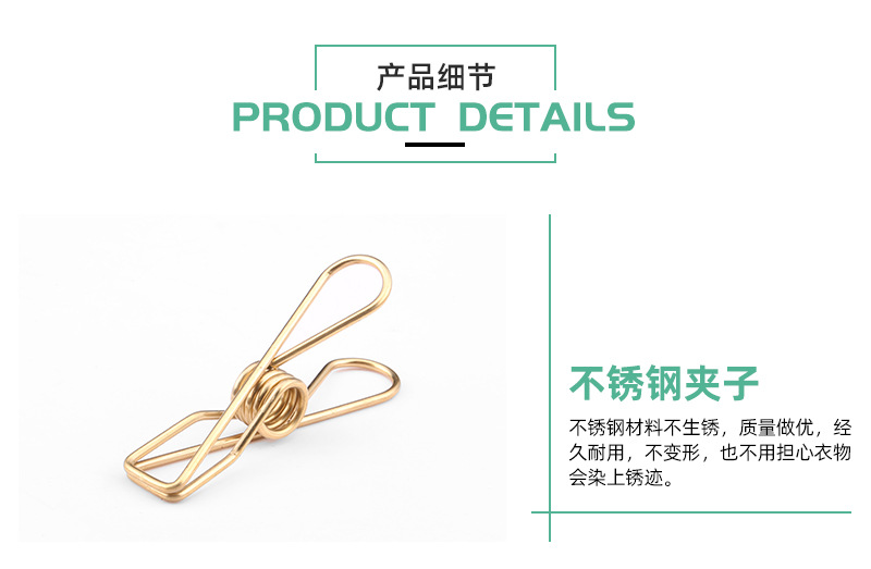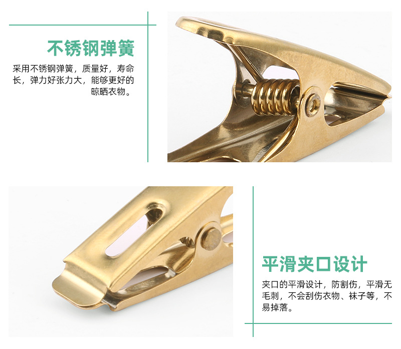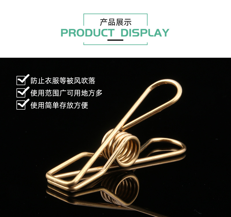 Guangkai Acero inoxidable clip chapado en oro clip de aleación de aluminio calcetines rack clip especial clip de línea de primavera clip plano al por mayor