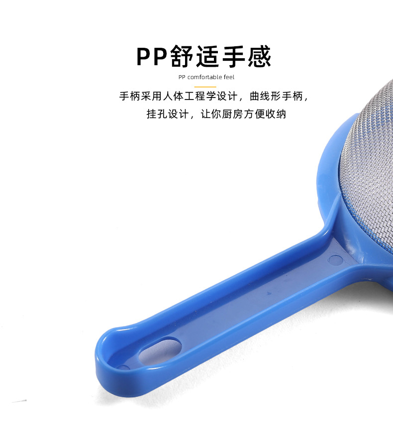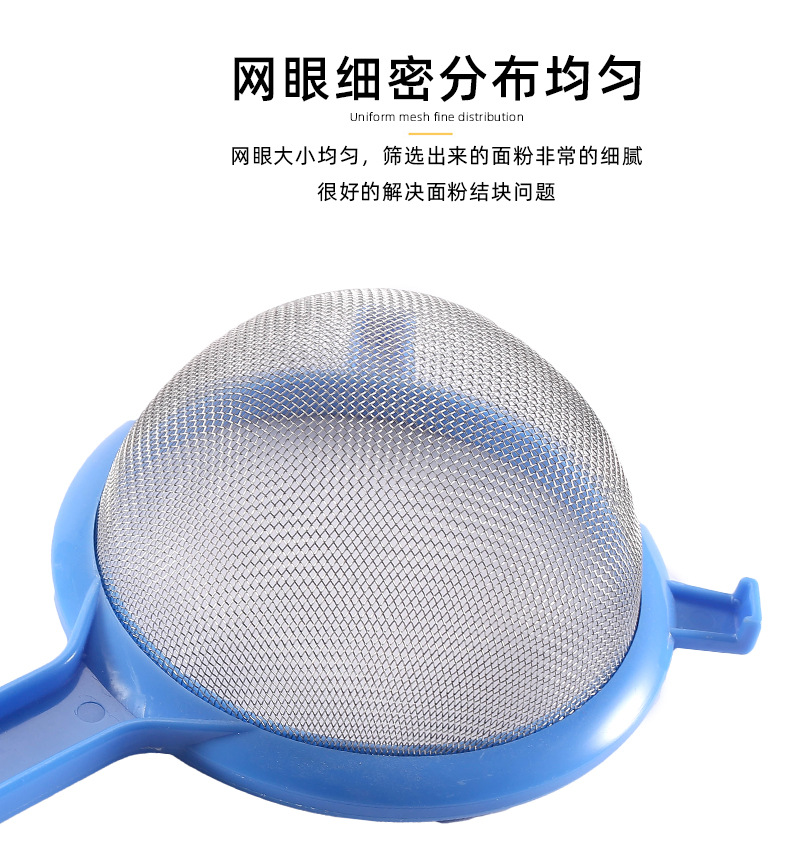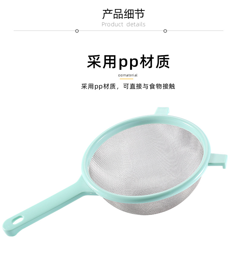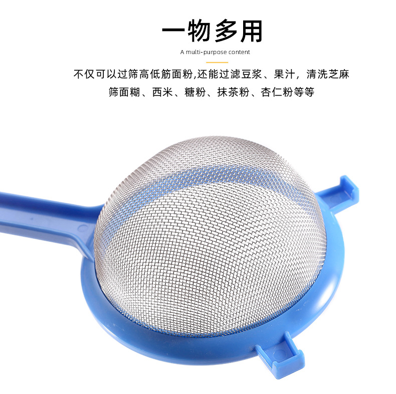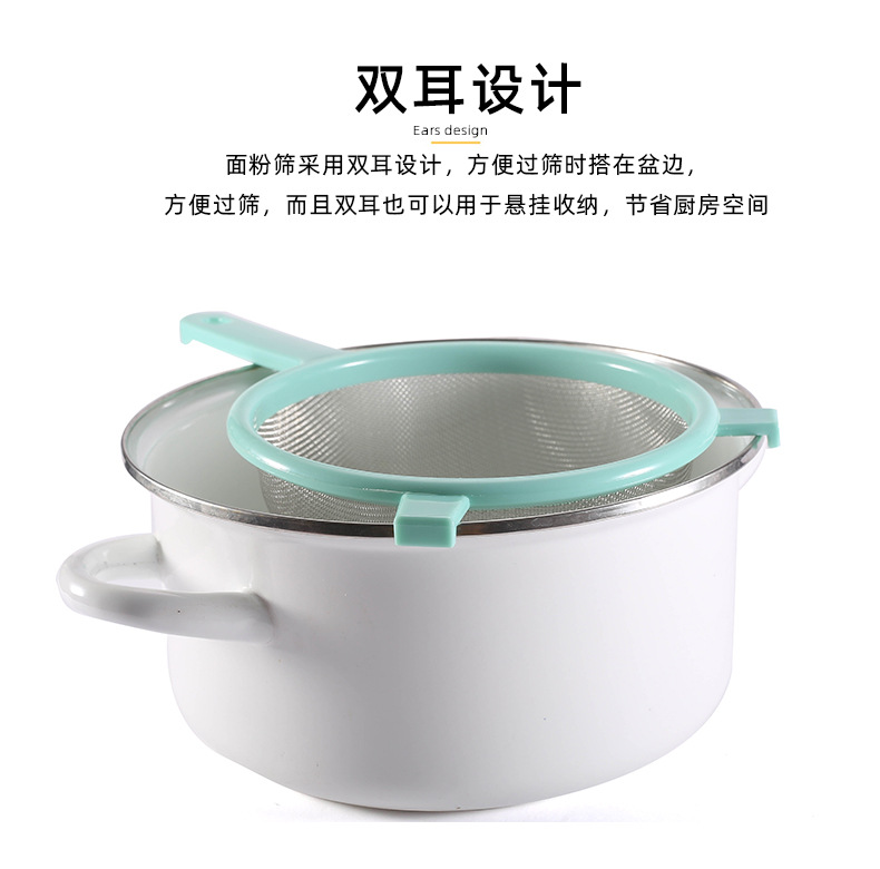 Suministro transfronterizo de comercio electrónico nueva pantalla de filtro de plástico taza de mano tamiz de harina malla doméstica cocina para hornear