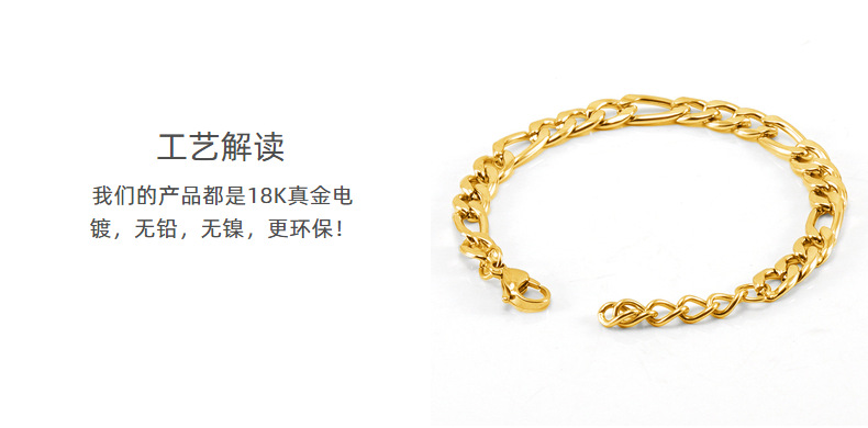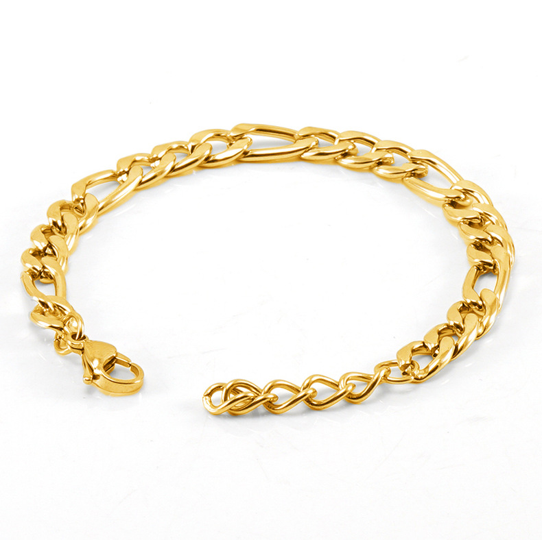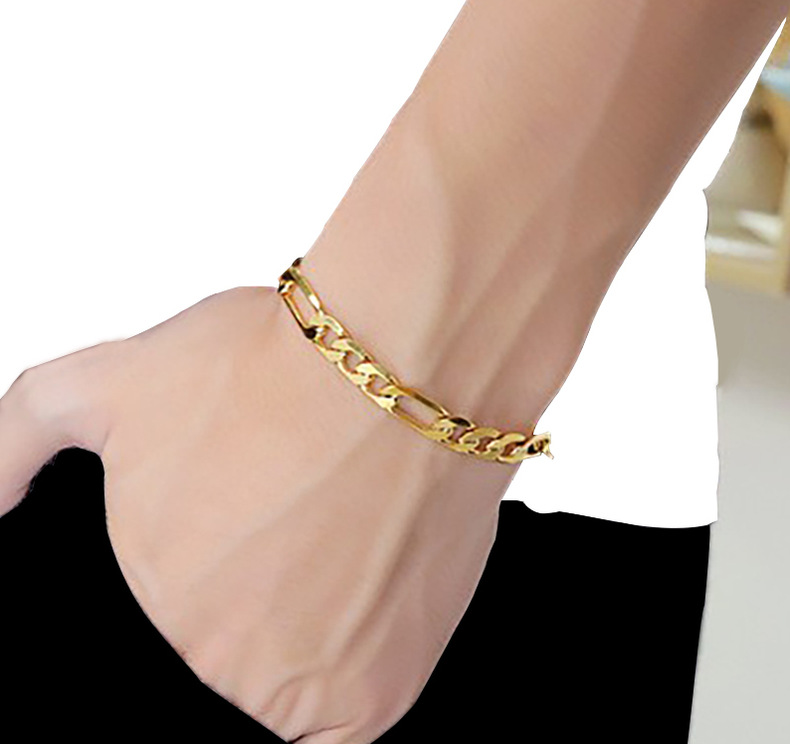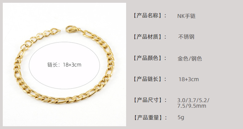 Pulsera de acero inoxidable Figaro NK de 18 quilates transfronterizos para hombres y mujeres Pulsera de acero de titanio chapado en oro simple europea y americana al por mayor