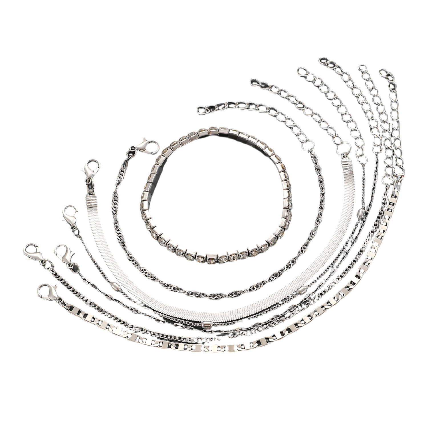 Pulsera de diamantes de aleación explosiva transfronteriza de cuatro piezas punk apilado conjunto de pulseras de hip-hop pulseras europeas y americanas femeninas