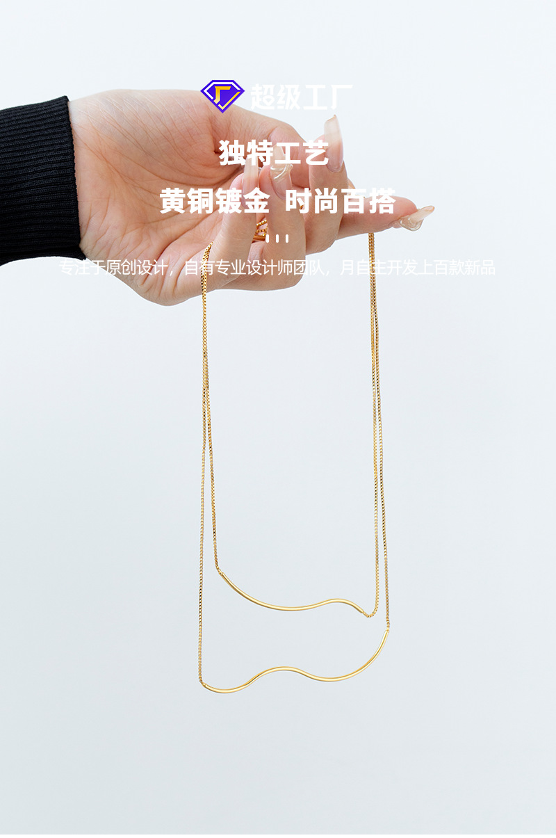 Latón chapado 18K oro real europeo y americano minimalista moda ins estilo curvo cadena collar nicho collar versátil Otoño e Invierno