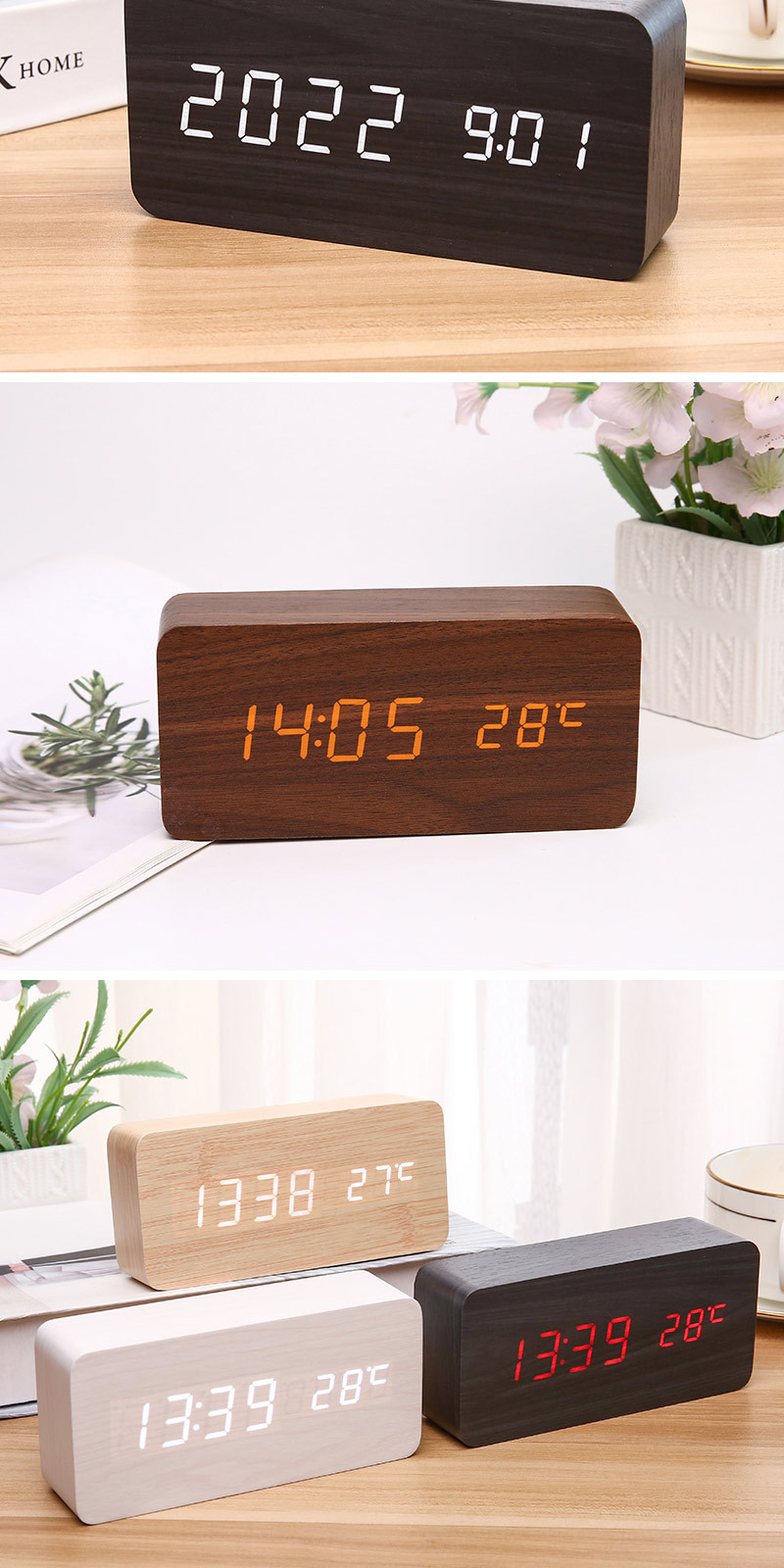 Comercio exterior transfronterizo Reloj despertador de madera LED reloj despertador de estudiante carga pantalla digital despertador electrónico moda reloj de madera decoración del reloj