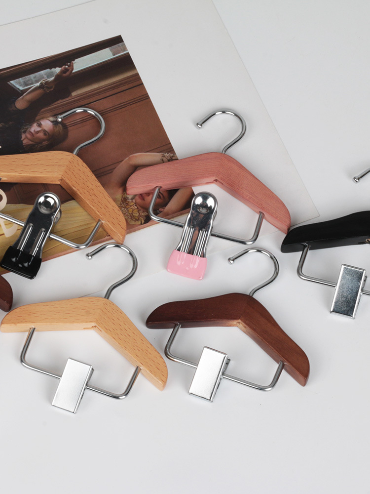 Venta al por mayor para mascotas percha de madera gato perro percha haya mini ropa clip hogar pequeño percha soporte de exhibición