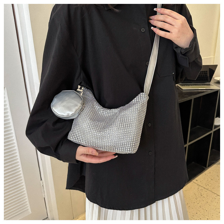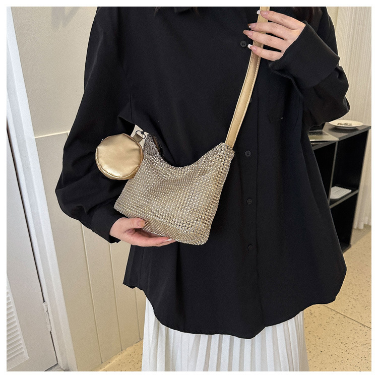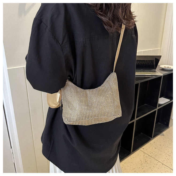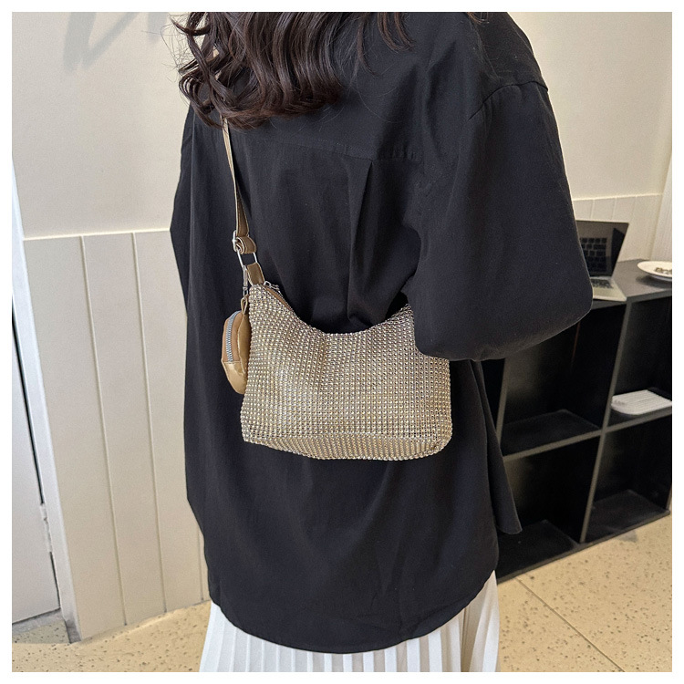 2023 primavera y verano nuevo bolso de hombro de estilo occidental elegante simple bolso de mujer de moda de diamantes de imitación de este año