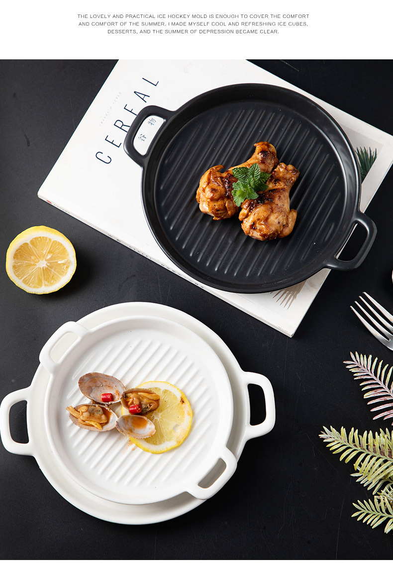 Nórdico placa redonda creativa hogar plato de cerámica horno de microondas binaural placa para hornear Placa de filete Placa de porcelana