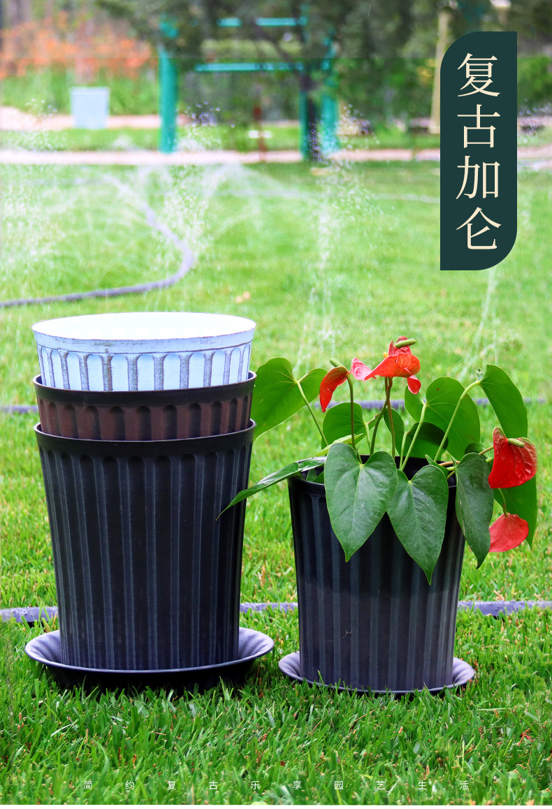 Venta al por mayor retro estilo europeo galón maceta de plástico maceta hogar Hortensia Rosa alambre Lotus resina maceta