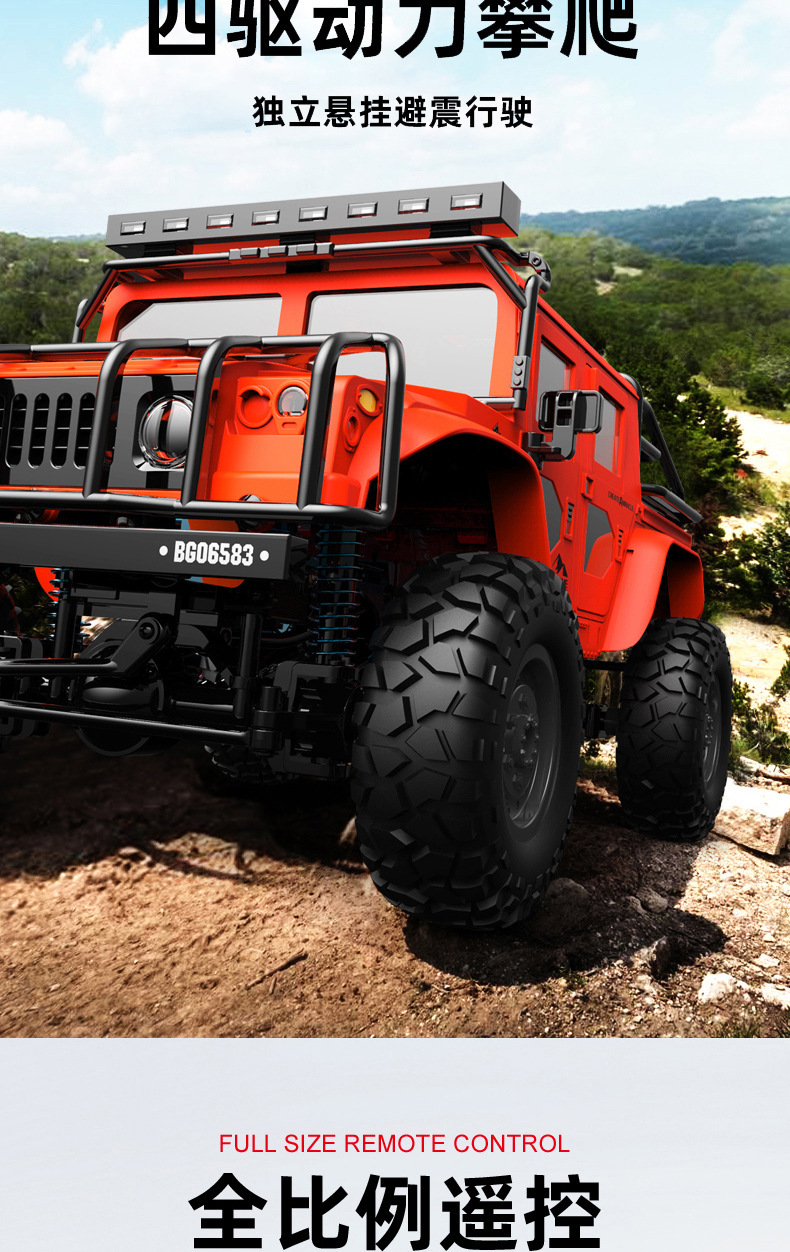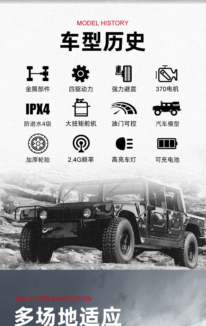 Control remoto transfronterizo de tracción en las cuatro ruedas escalada todoterreno IPX4 coche de alta velocidad simulación a gran escala Humvee coche H1 modelo de juguete