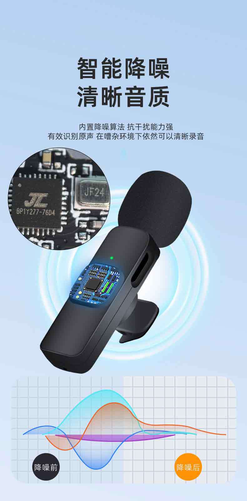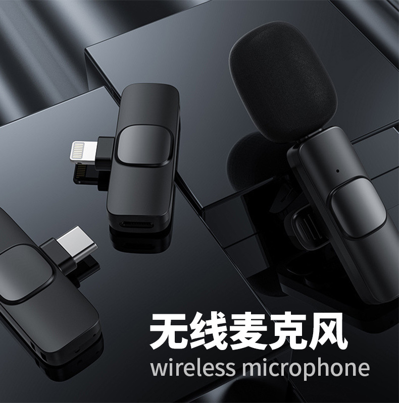 Micrófono inalámbrico de pinza de collar caliente K1 uno a dos Douyin Live Smart Ruido Reducción de ruido Mini micrófono inalámbrico