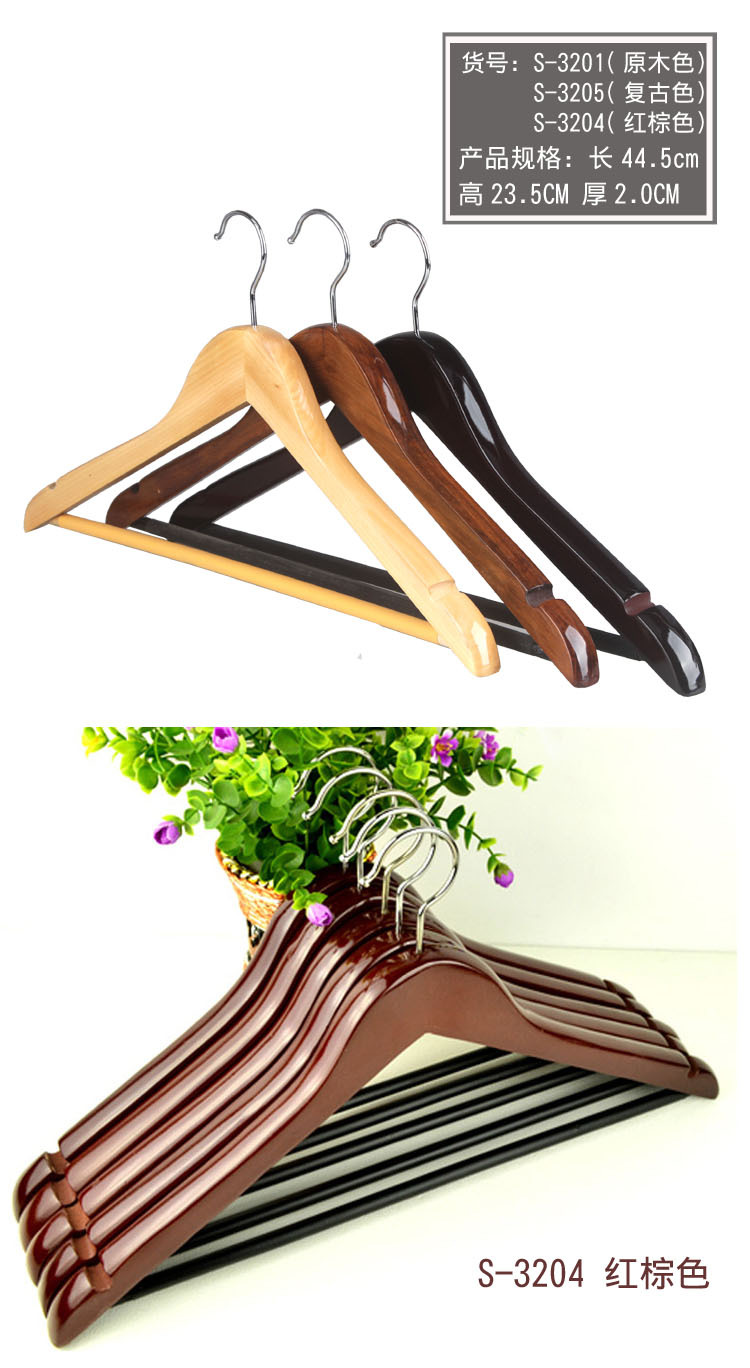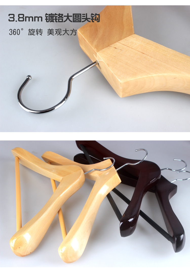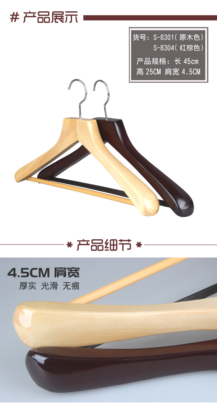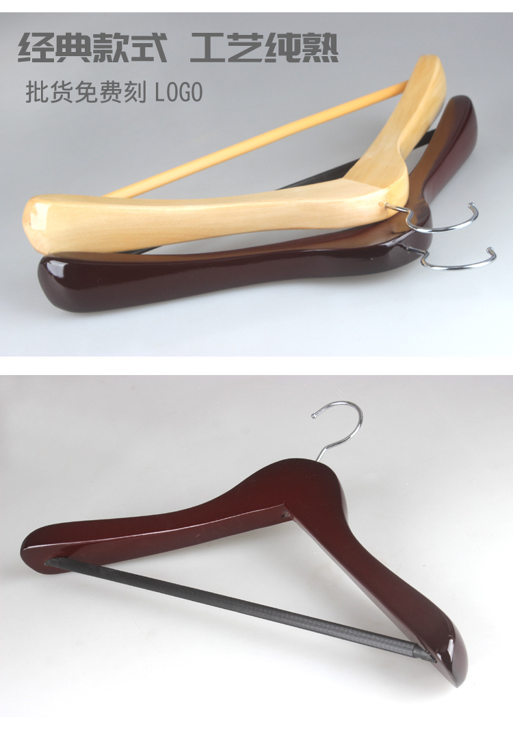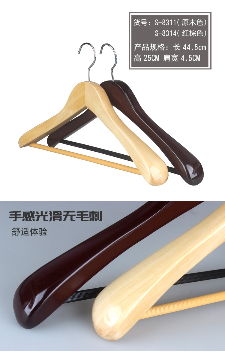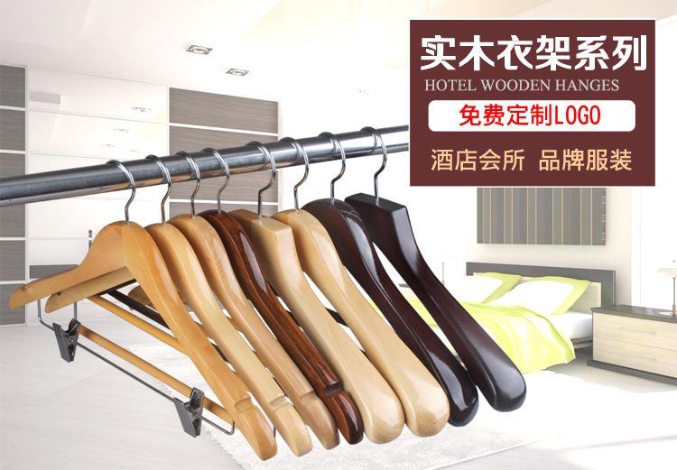 Hotel de cinco estrellas estante de ropa de hombro ancho de madera al por mayor habitación de invitados abrigo de madera maciza colgando antideslizante soporte de ropa engrosada con clip